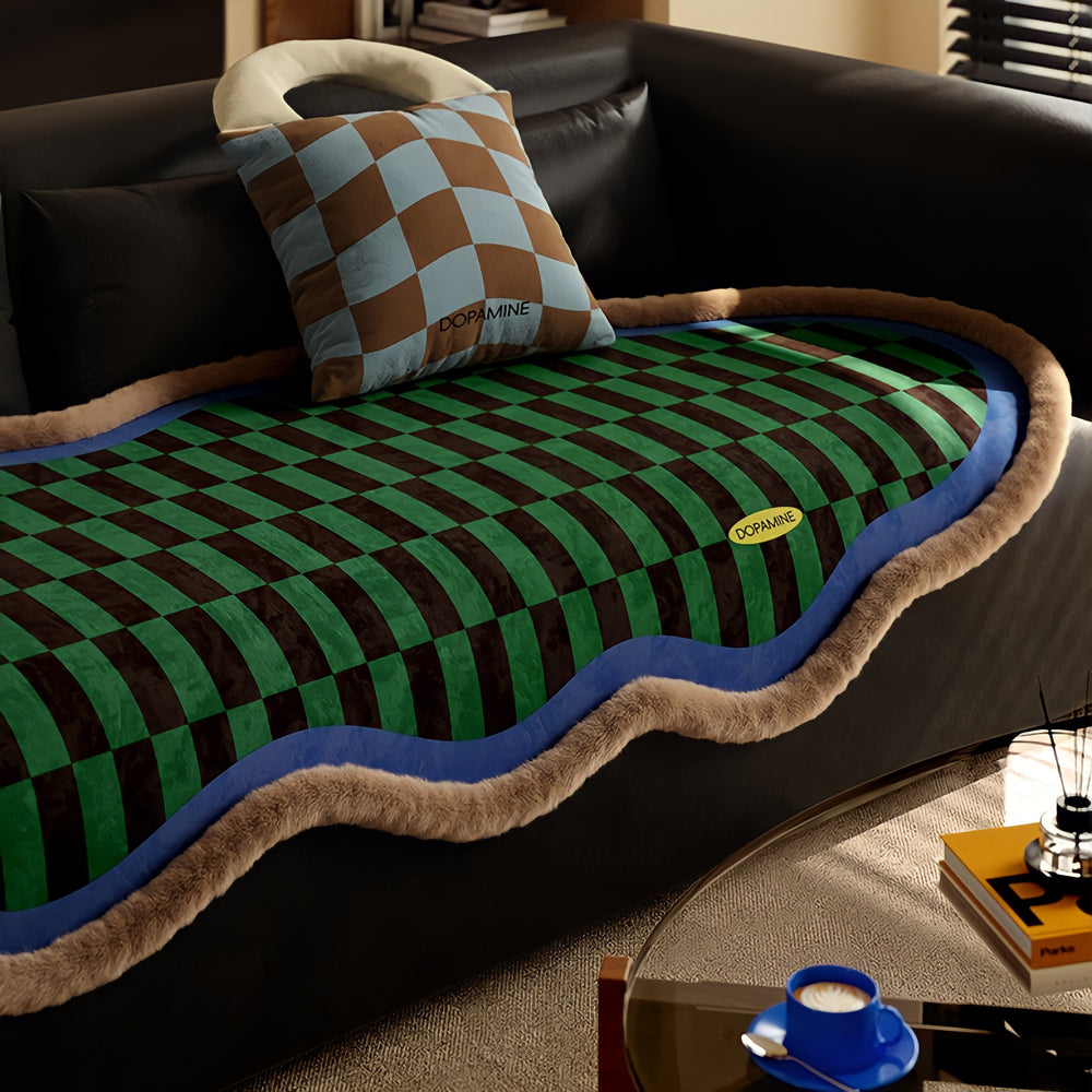 ウェーブブロックチェックシートクッション ベージュ