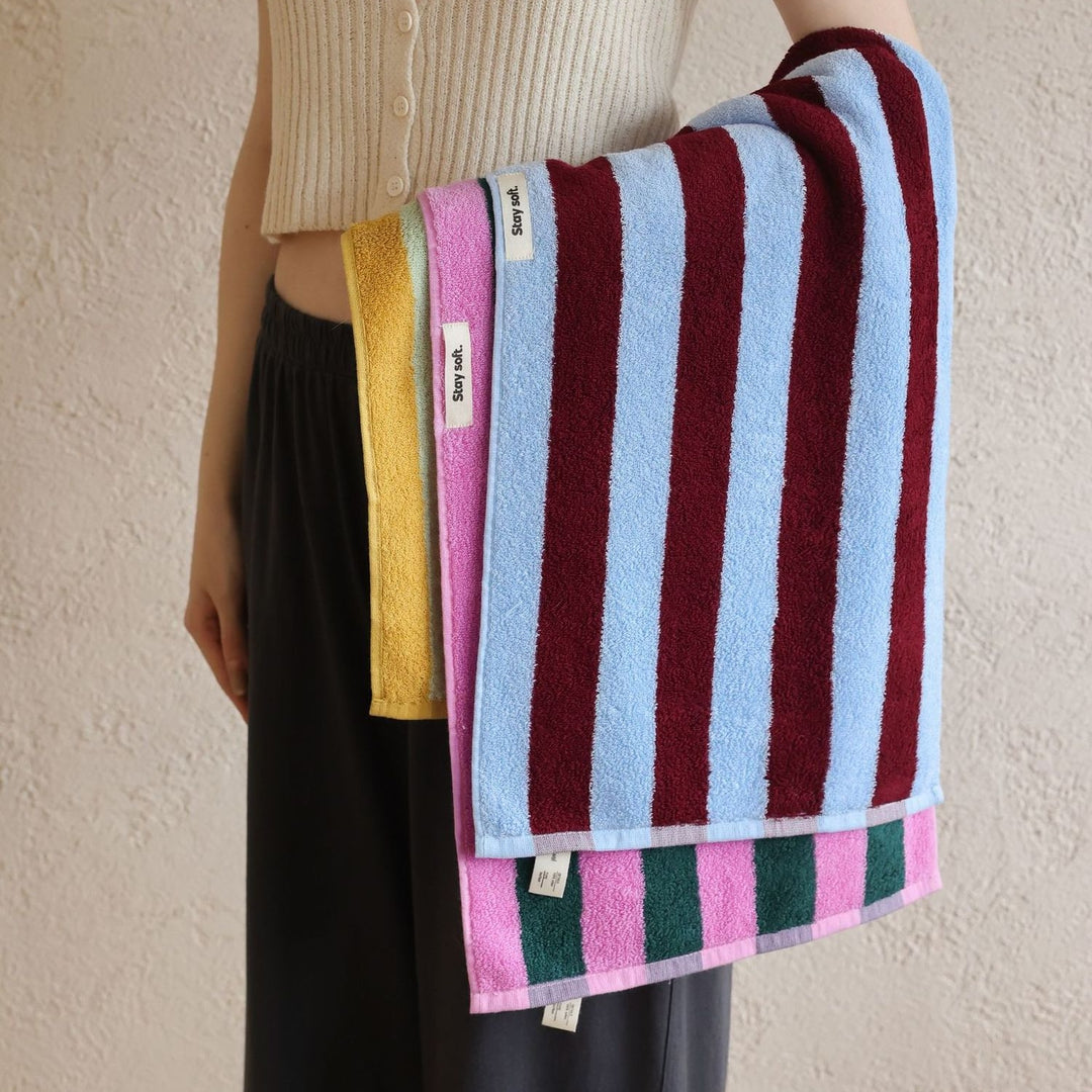 ワイドストライプカラーブロックコットンタオル