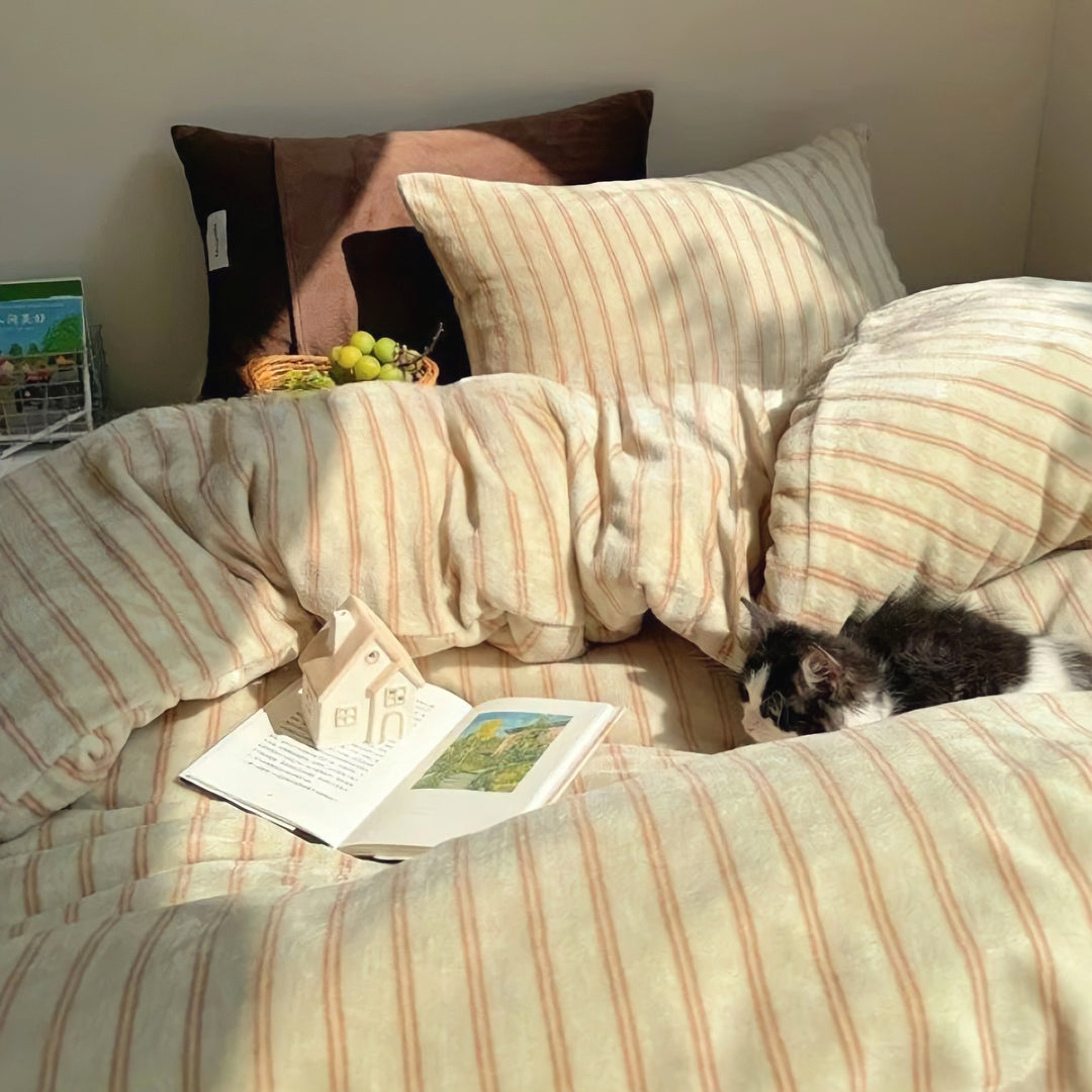ストライプミルクフリース寝具セット キャメル