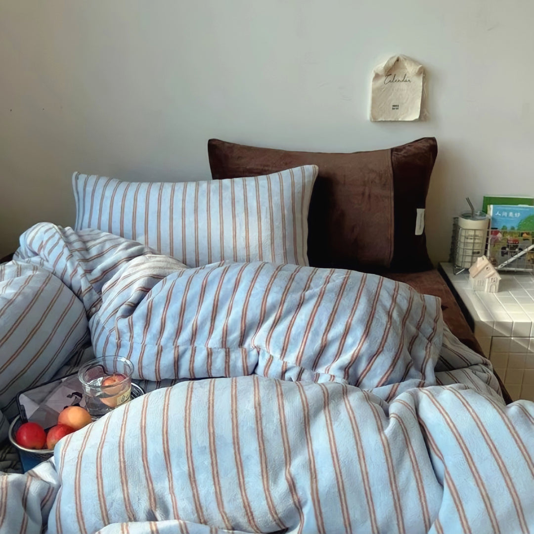 コットンストライプ寝具セット "ベイビーブルー"