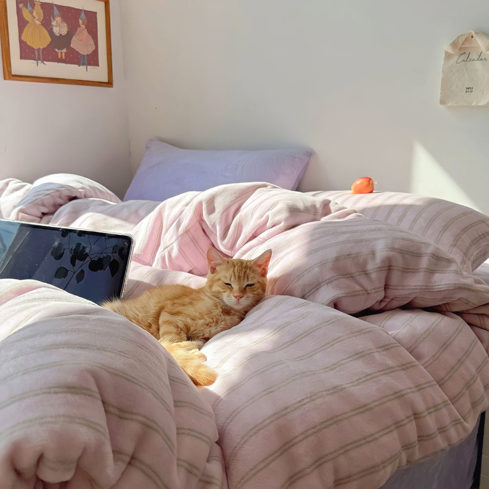 ストライプミルクフリース寝具セット ピンク