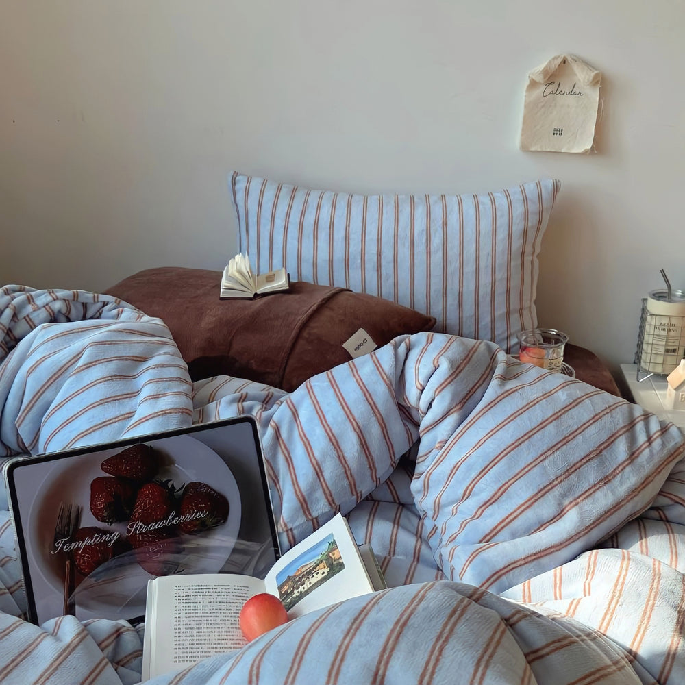 ストライプミルクフリース寝具セット ブルー