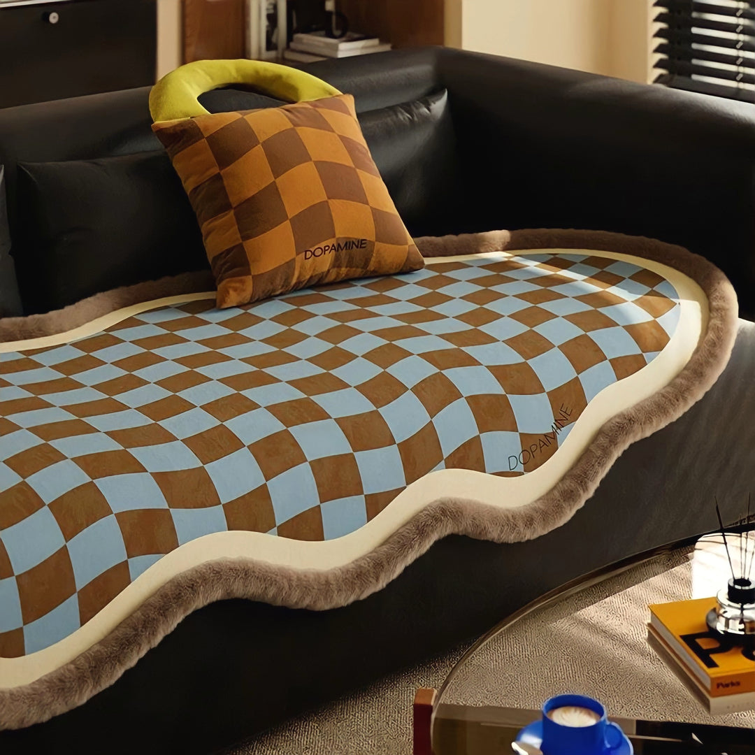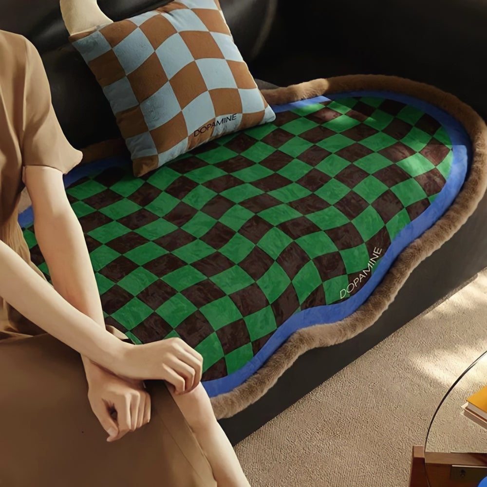レトロパターンブロックチェックラグ防水カーペット