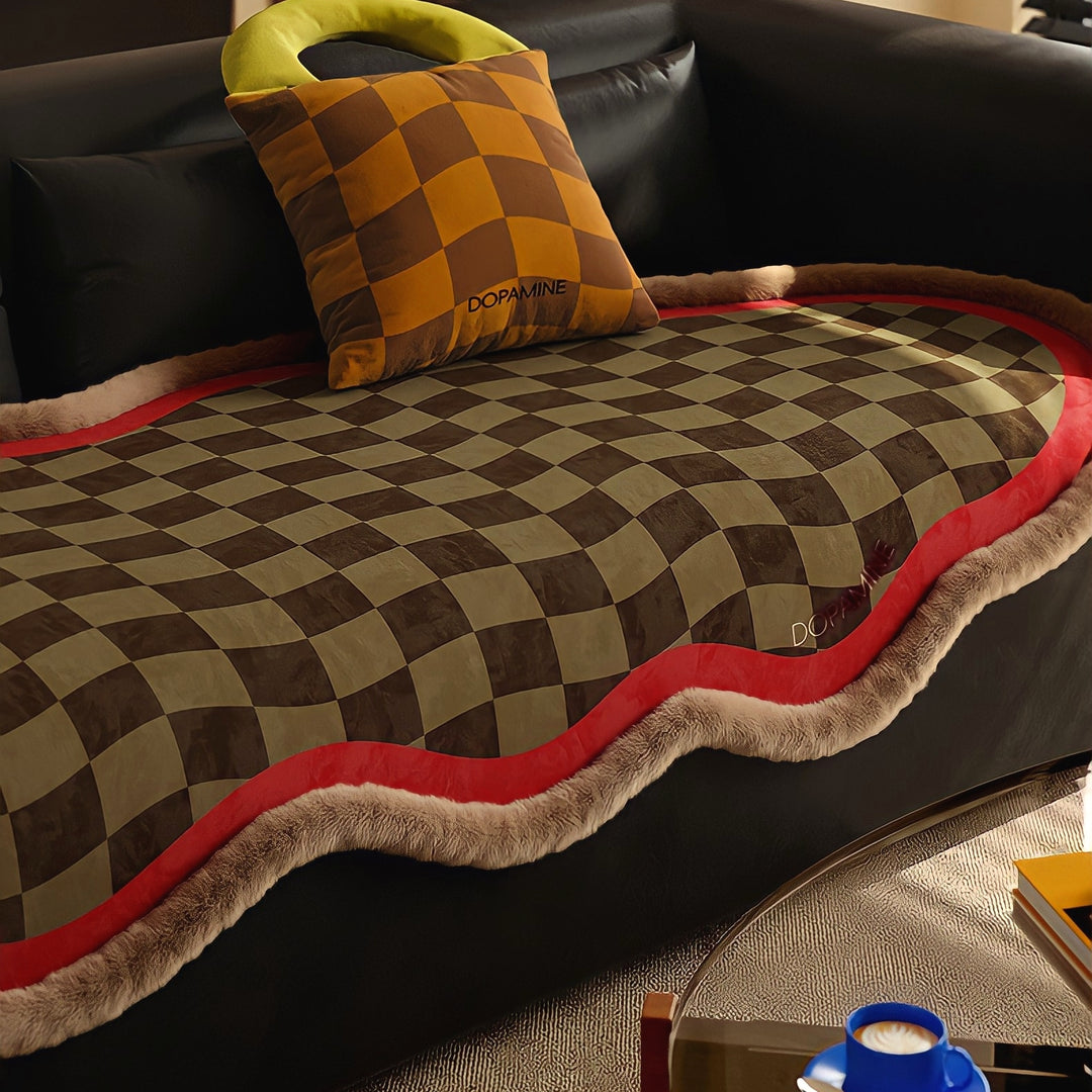 ウェーブブロックチェックシートクッション ベージュ
