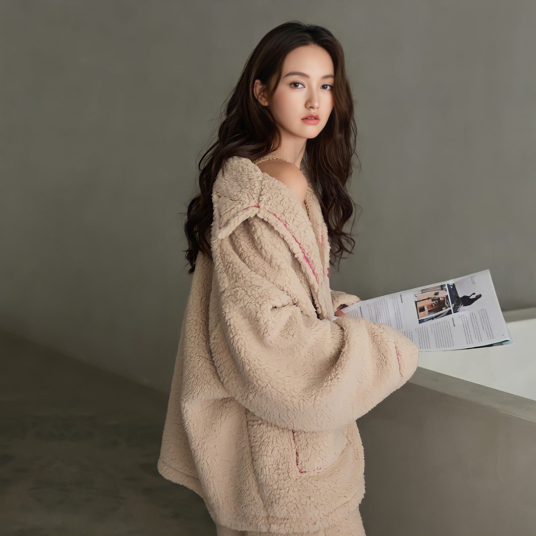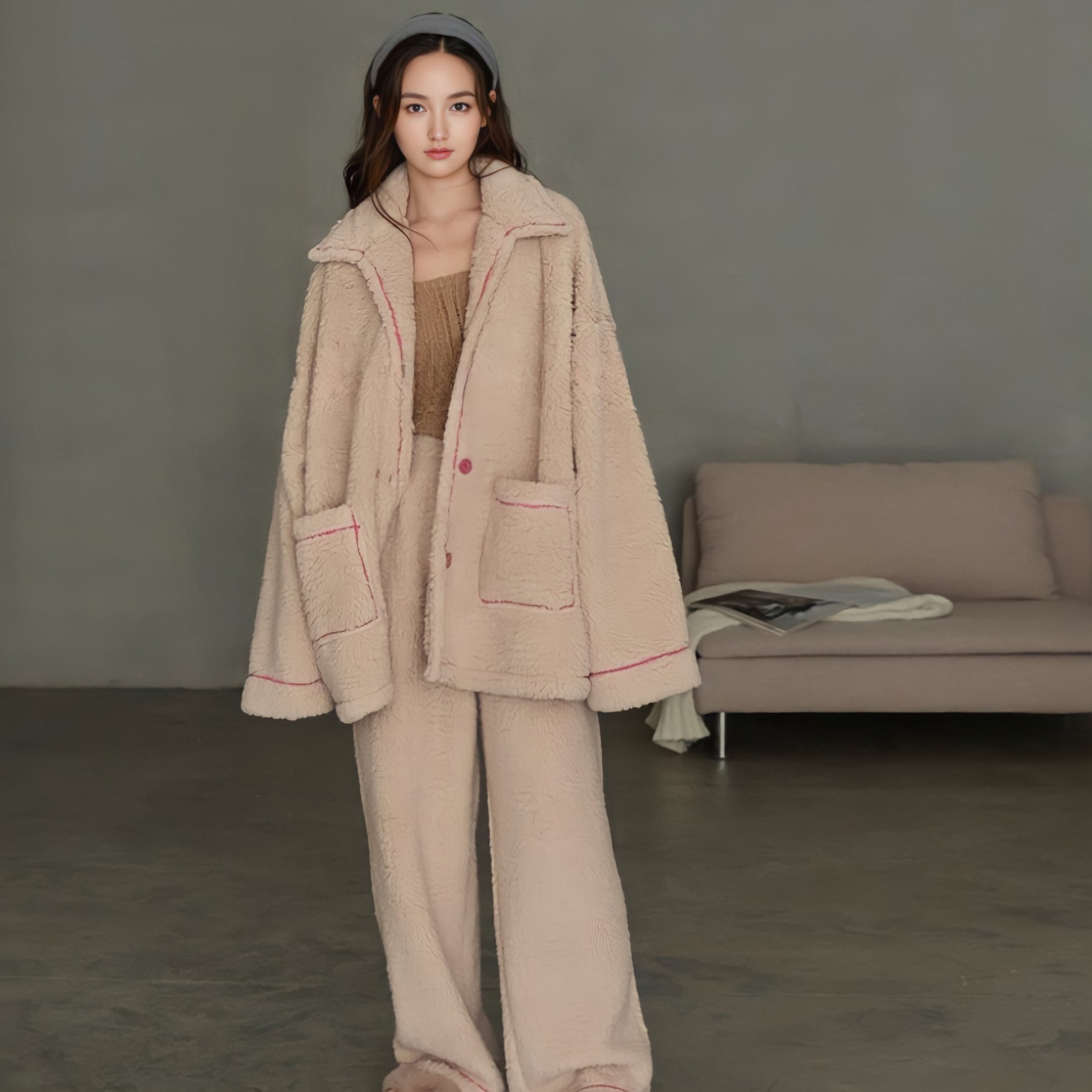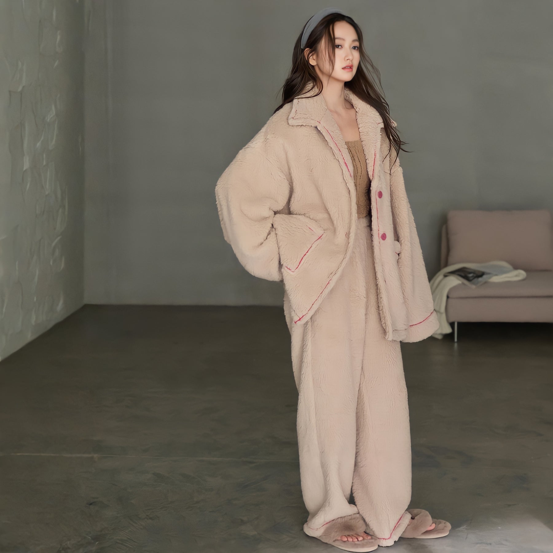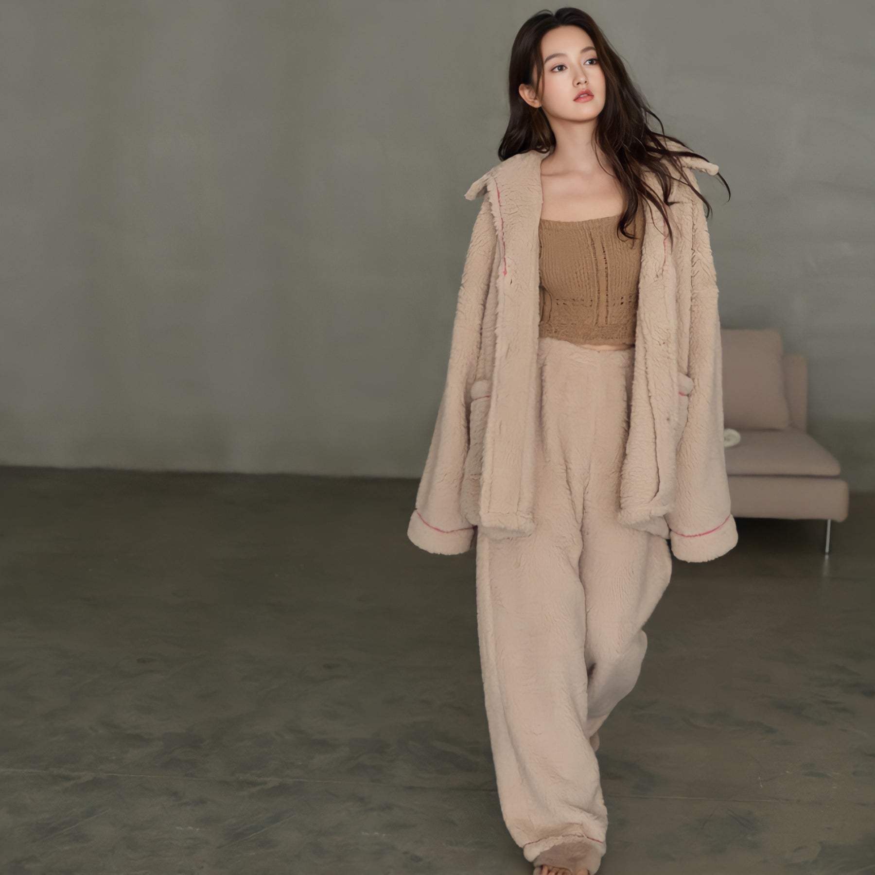 ふわふわとしたフリース素材をたっぷり使用し、思わず触れたくなるような柔らかさに仕上げたルームウェア。