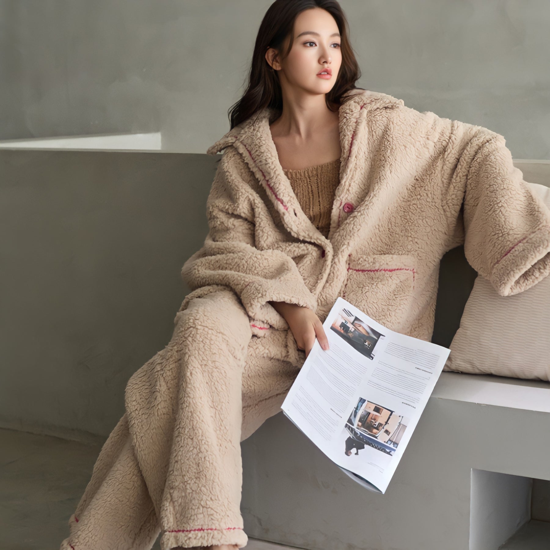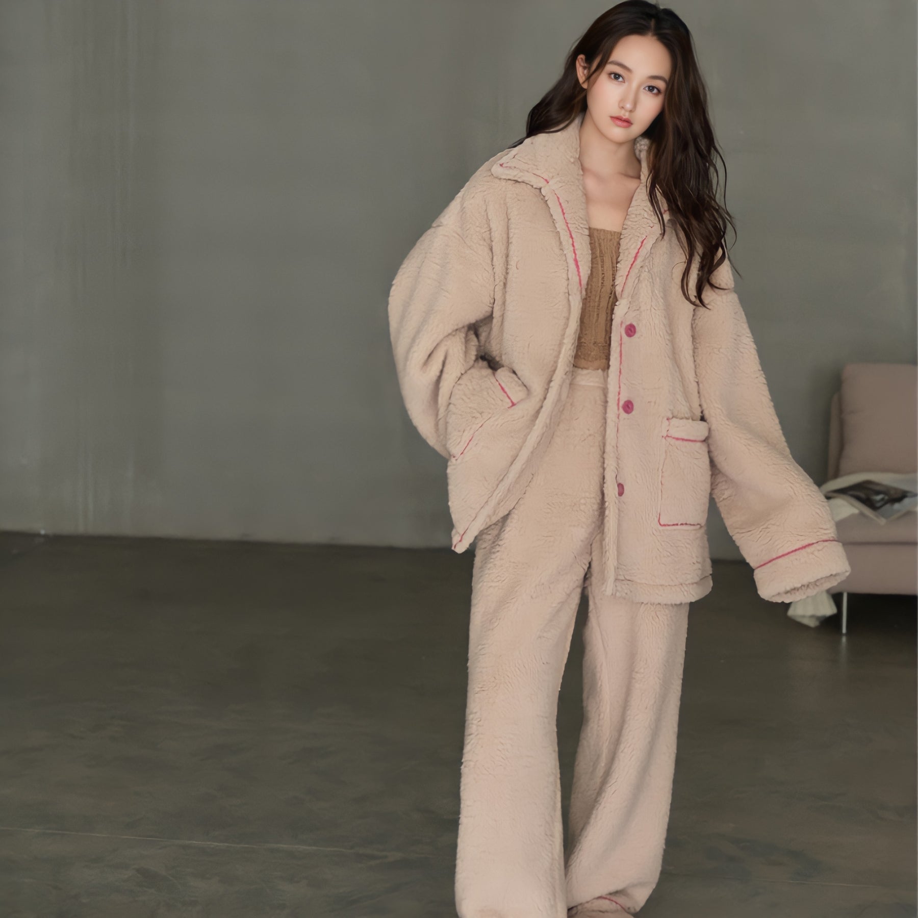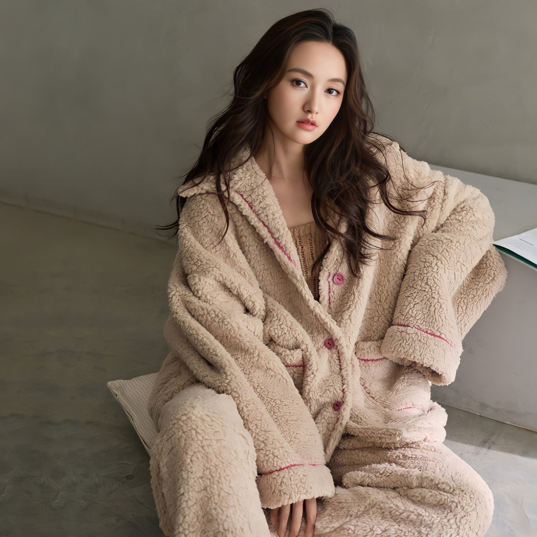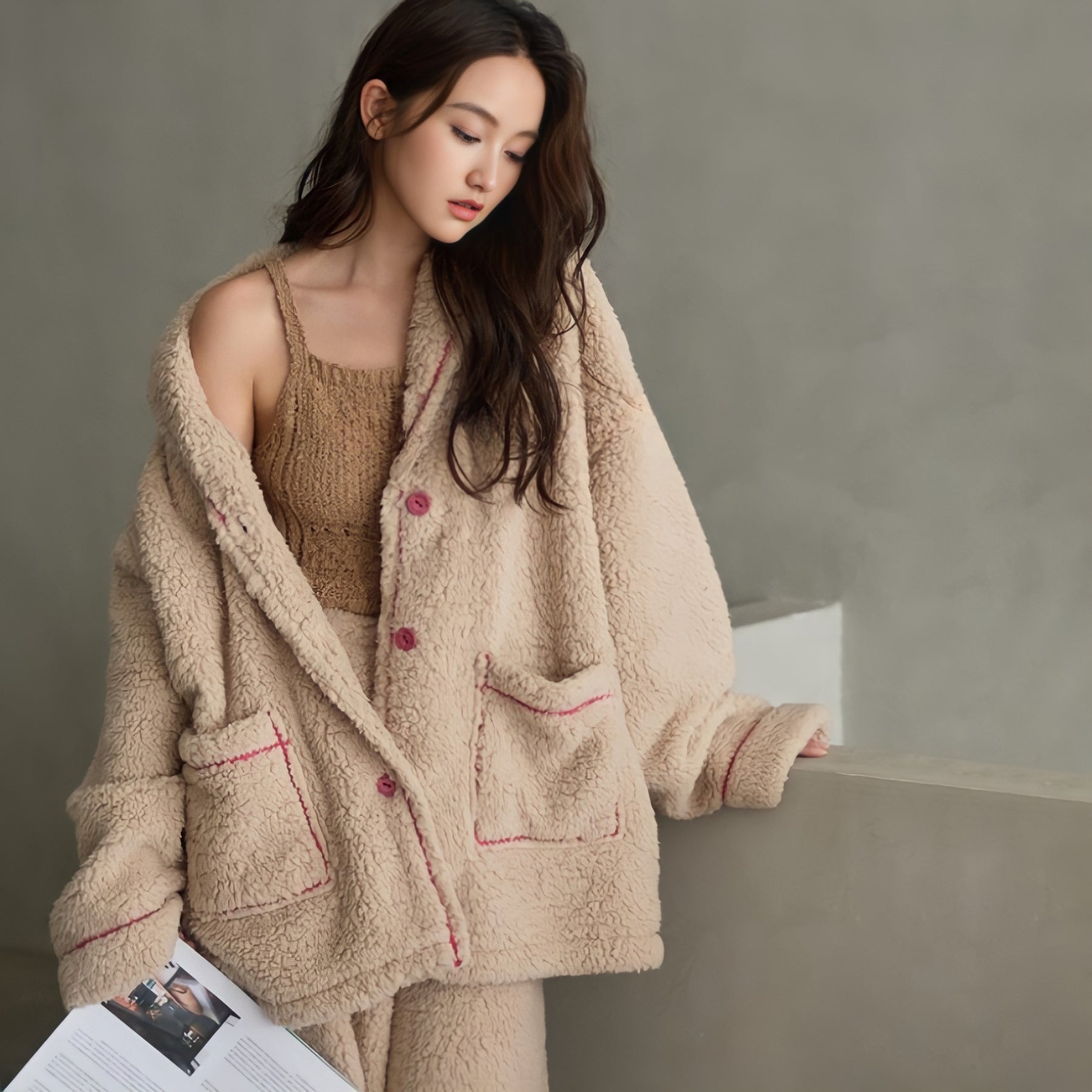 ふわふわとしたフリース素材をたっぷり使用し、思わず触れたくなるような柔らかさに仕上げたルームウェア。