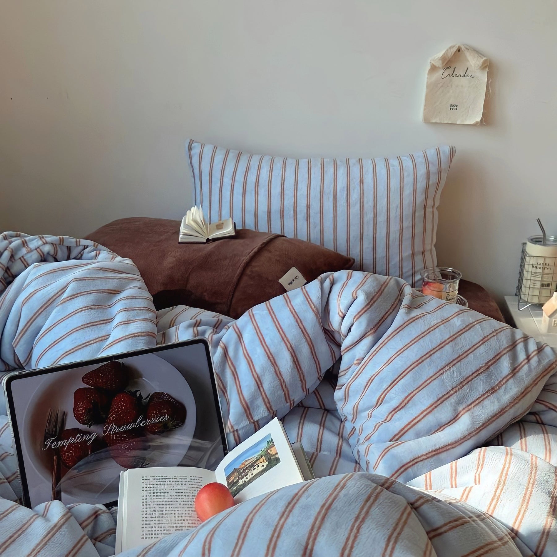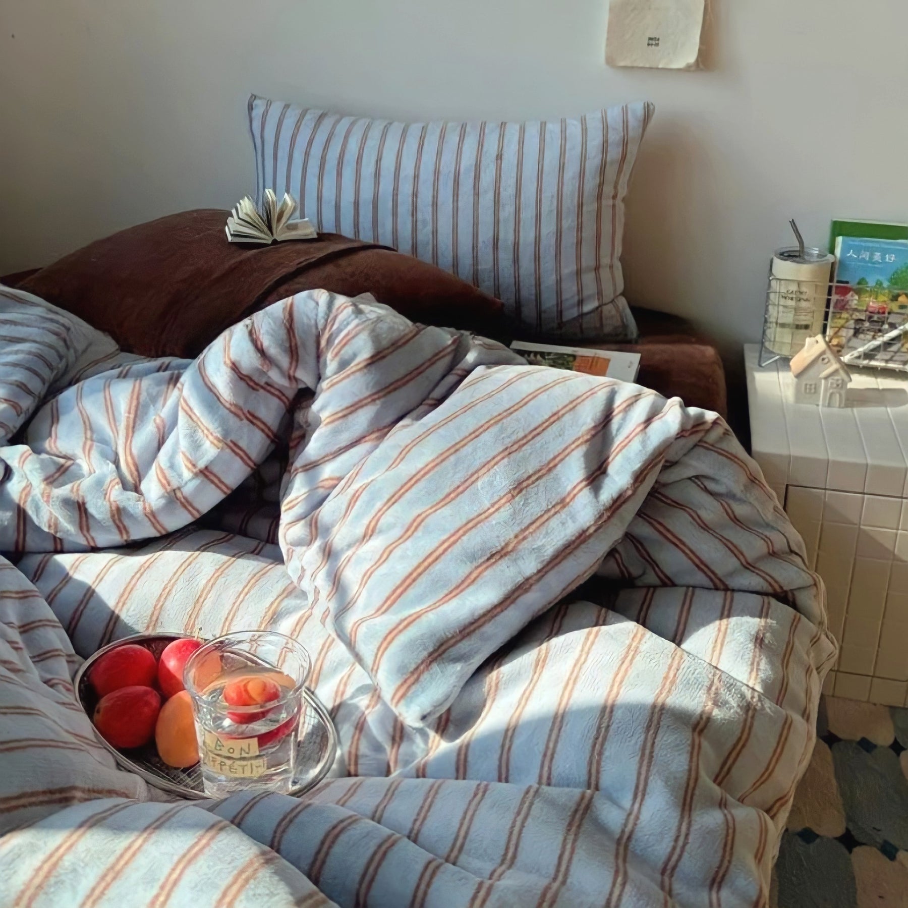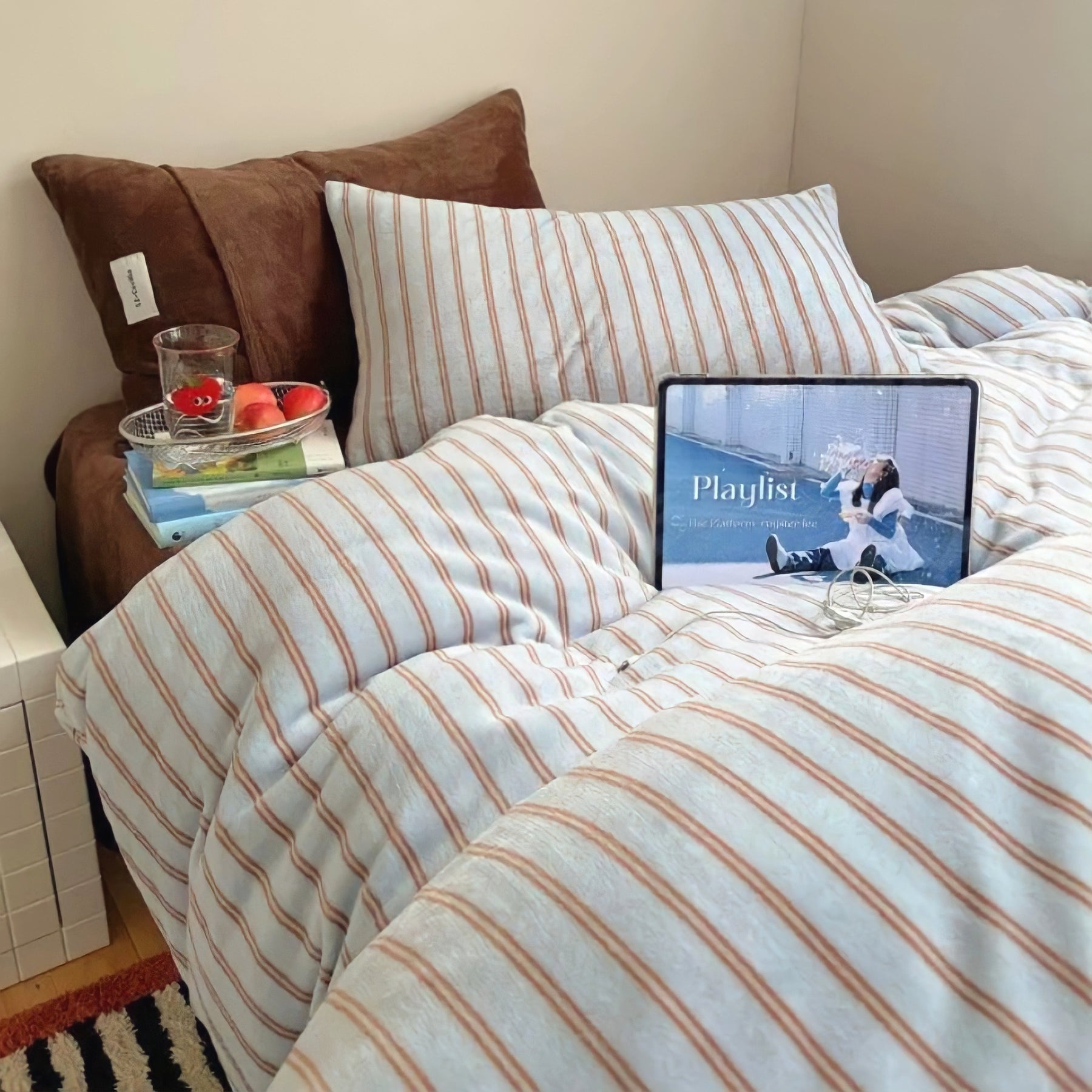 やさしい色味のストライプ柄が、寝室にナチュラルな抜け感をプラス。無地とは違うさりげない可愛さで、お部屋をふんわりとした雰囲気に仕上げてくれます。