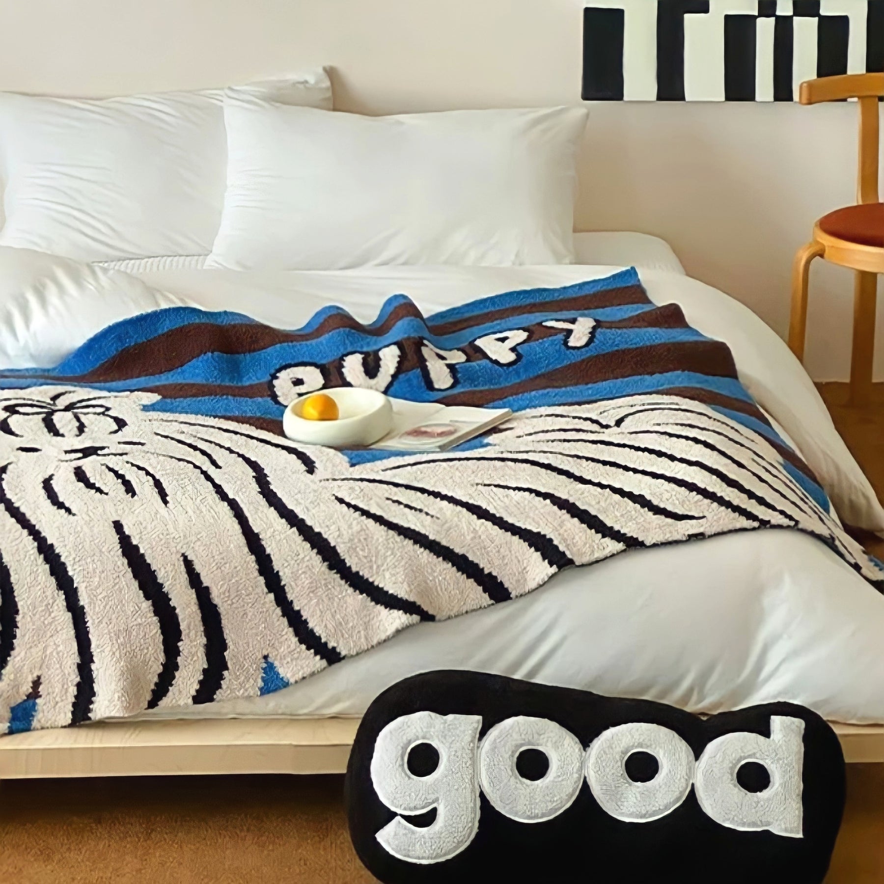ゆるいタッチのヨーキーのデザインがなんとも愛らしく、お部屋に広げるだけで気分もほっこり。ペットと一緒にくつろぐ時間にもぴったりです。