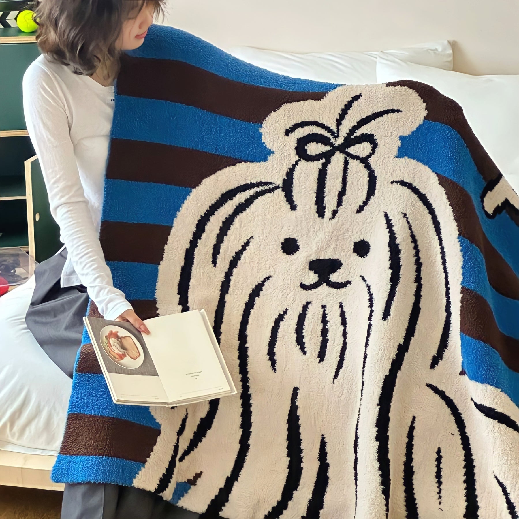 ヨークシャーテリア好きさんにはたまらない、存在感たっぷりのブランケット。