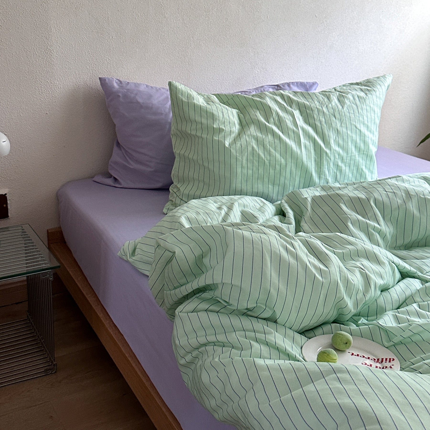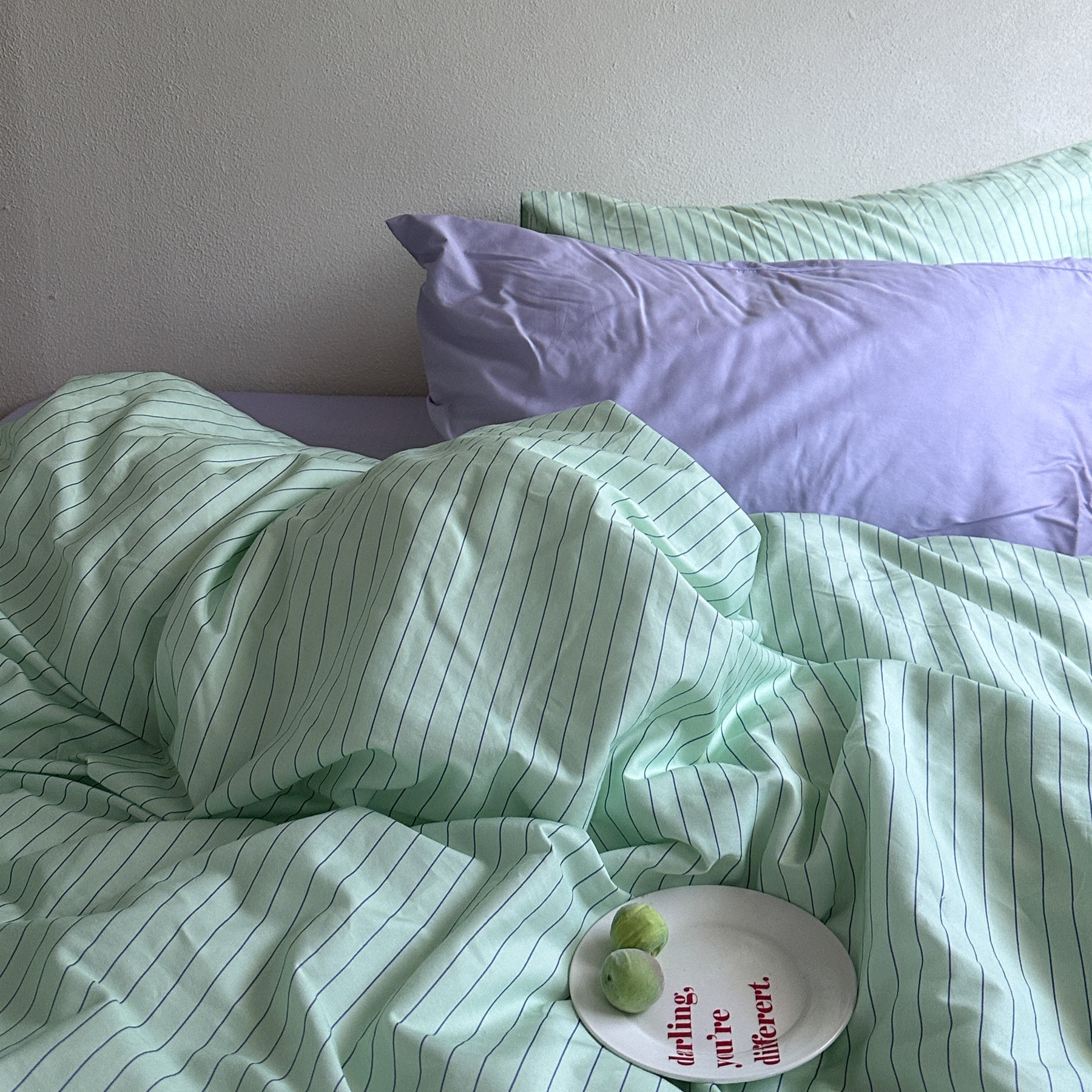 鮮やかな染色が目を引く、遊び心たっぷりの寝具セット。
