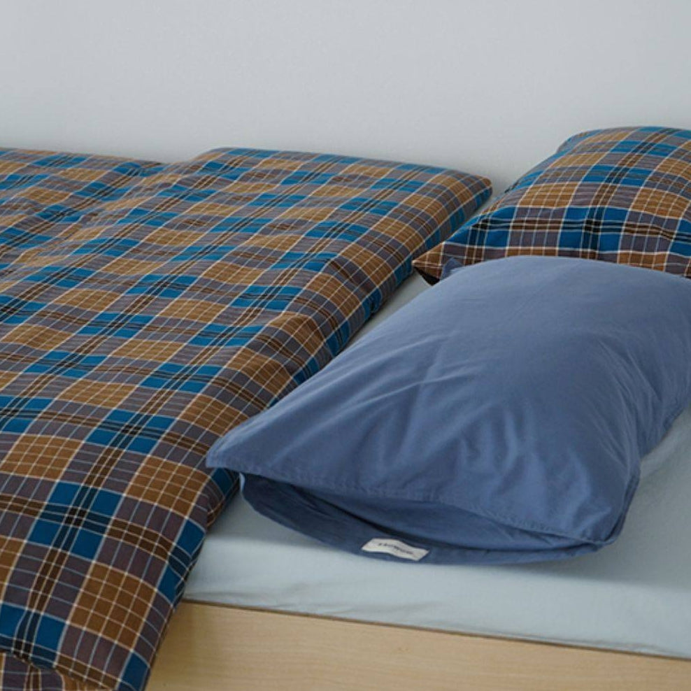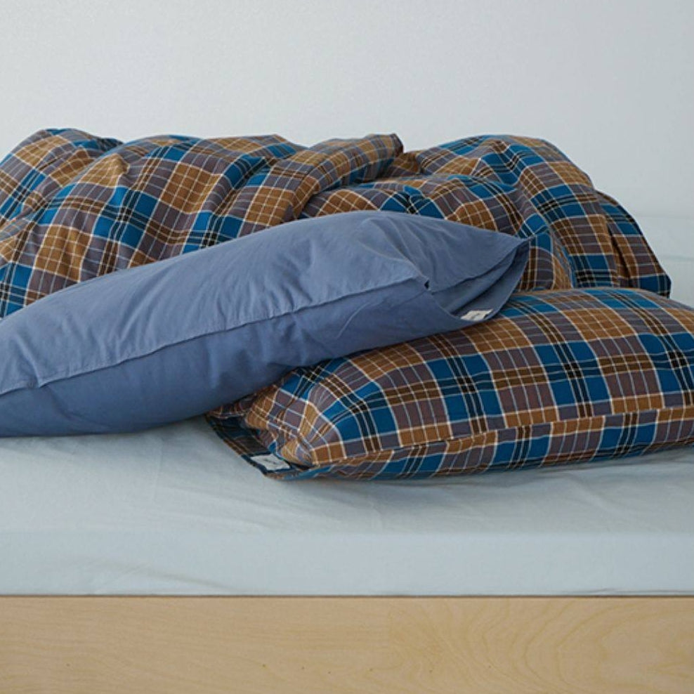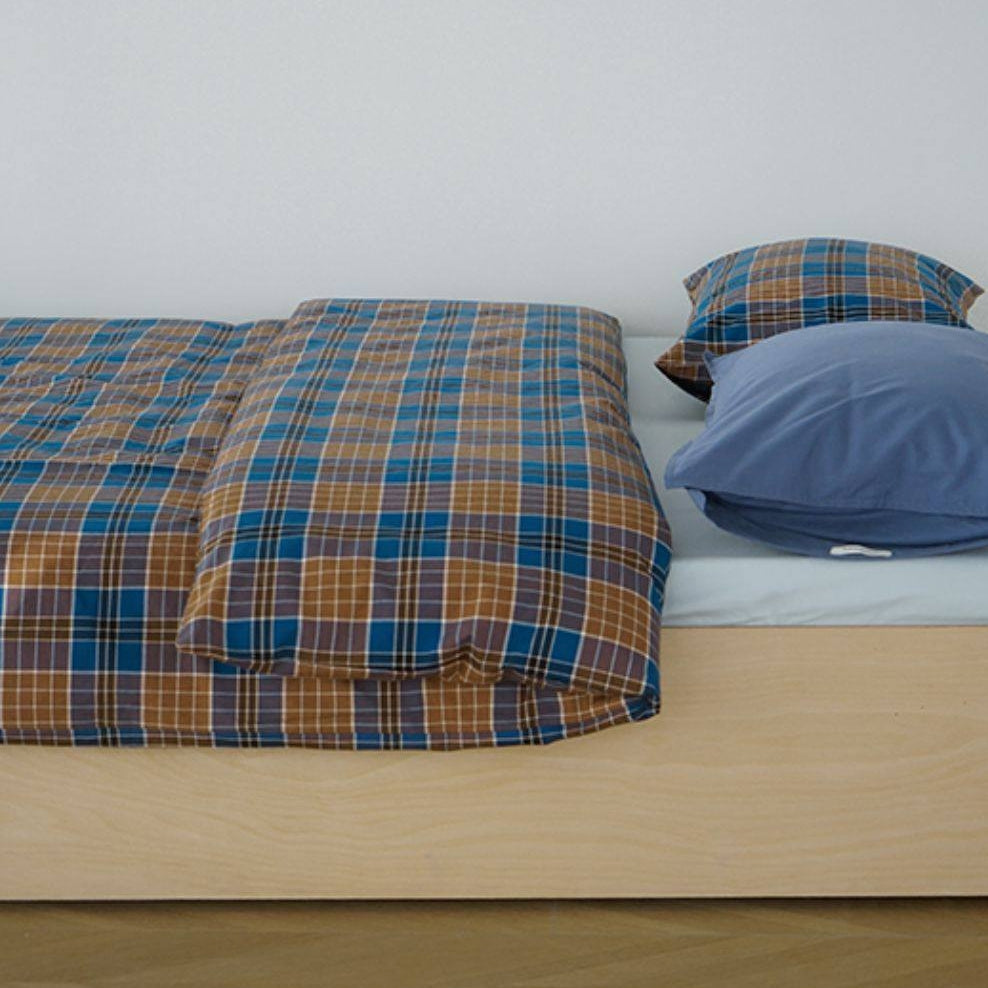 ピュアコットンチェック柄寝具カバー ブラウンブルー