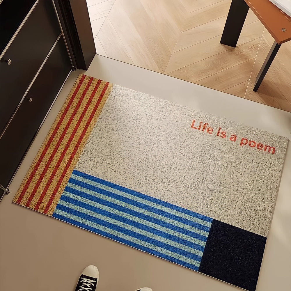 玄関に敷くだけで気分がちょっと上がる「ポエムデザインカラーブロックドアマット」。大胆なカラーブロックと“Life is a poem”のメッセージが、毎日の出入りを少し特別に演出してくれます。全6色から選べるので、お部屋や気分に合わせてコーディネート可能。