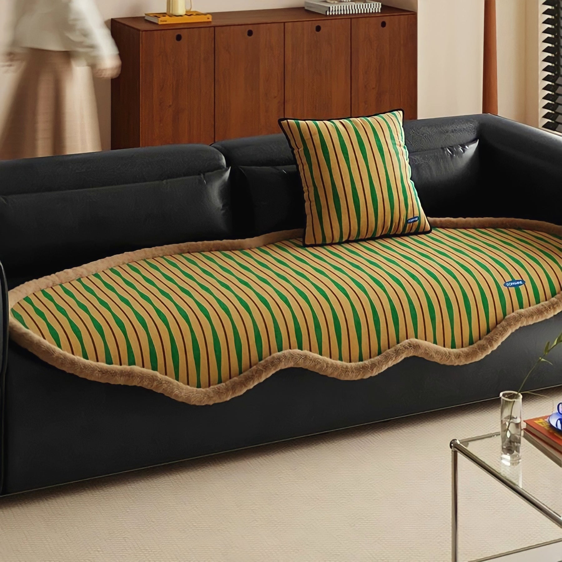 裏面には滑り止め加工を施しているので、レザーソファやつるっとした生地でもしっかり安定。ソファを傷つける心配もなく、冬場の冷たさを軽減してくれます。