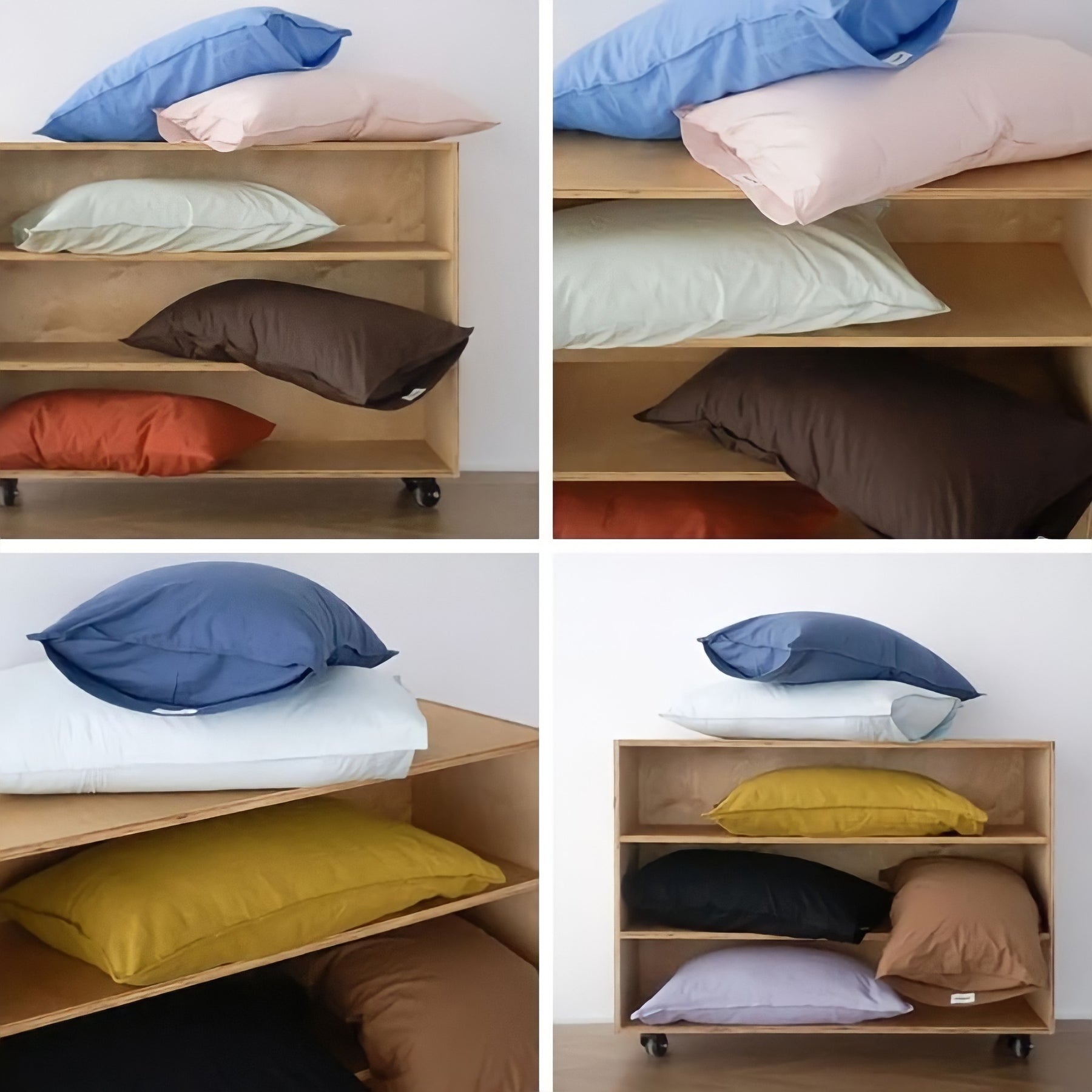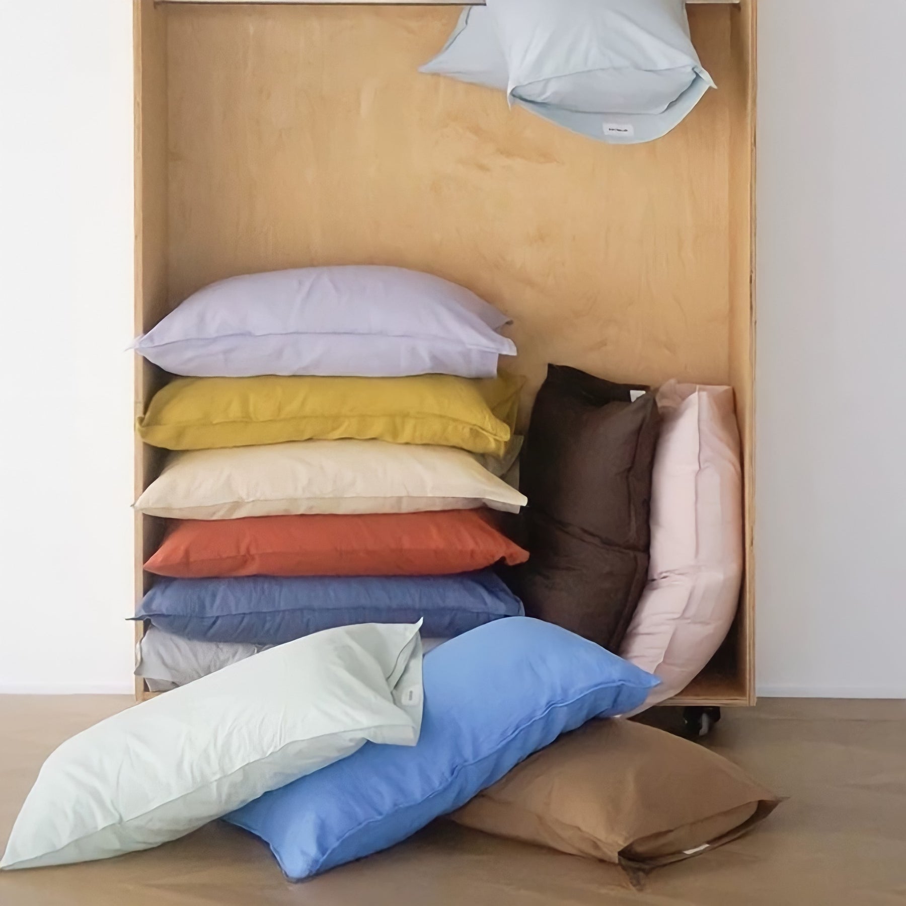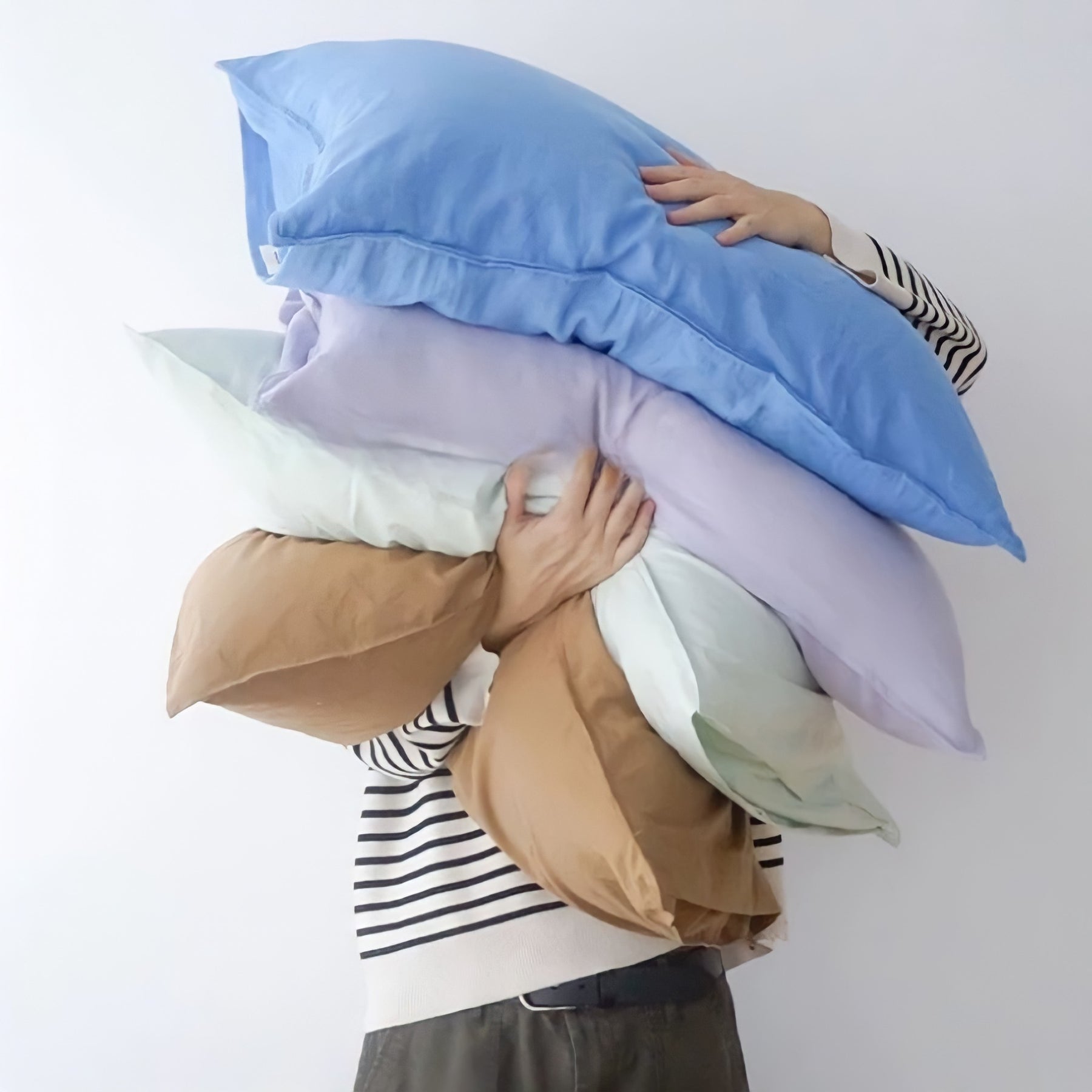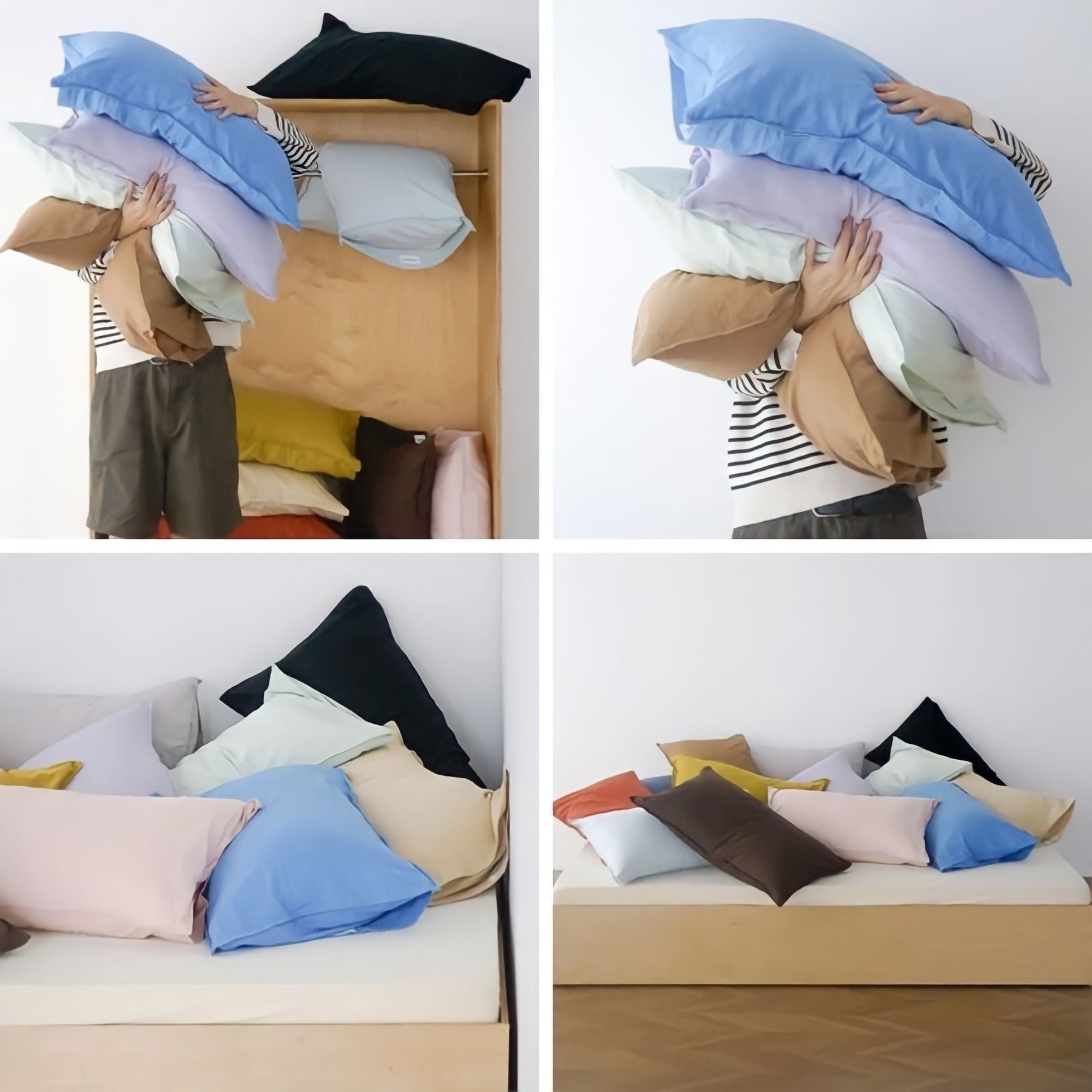 こちらの枕カバーは、ご家庭の洗濯機で丸ごと洗うことができます。