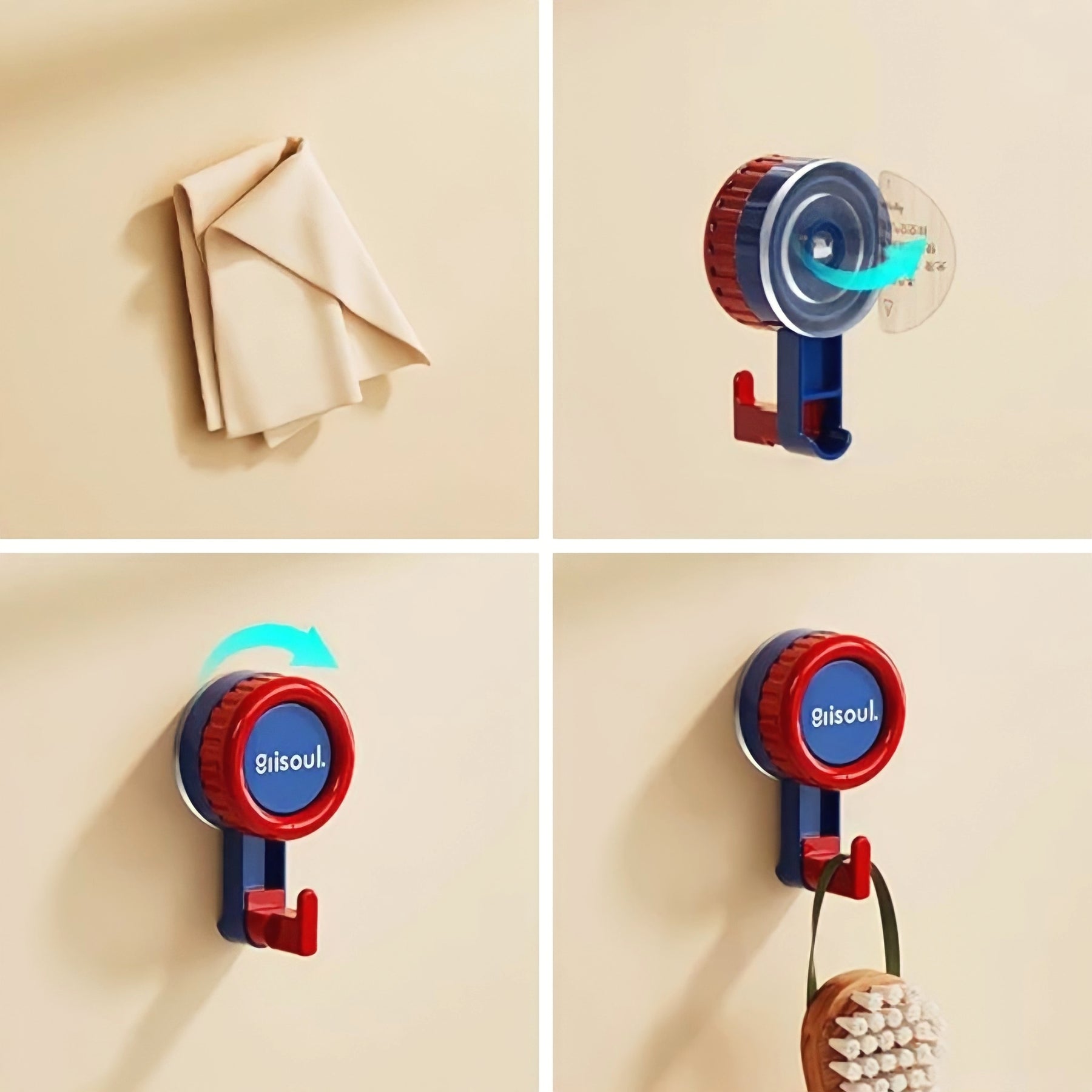 ポップでレトロなカラーリングが目を引く吸盤フック。工具も穴あけも不要で、くるっと回すだけで簡単に取り付けできます。
