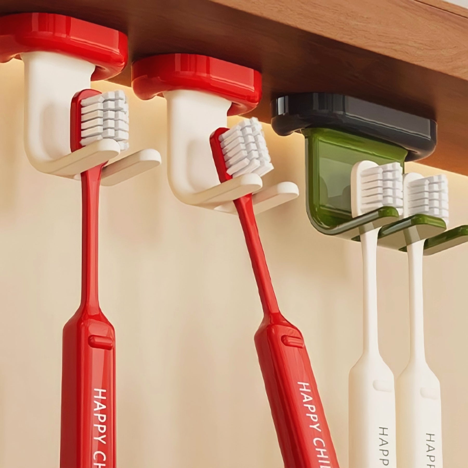 歯ブラシを浮かせて収納できるから、水が溜まらず衛生的。洗面所やバスルームの限られたスペースでもスッキリ収納できます。