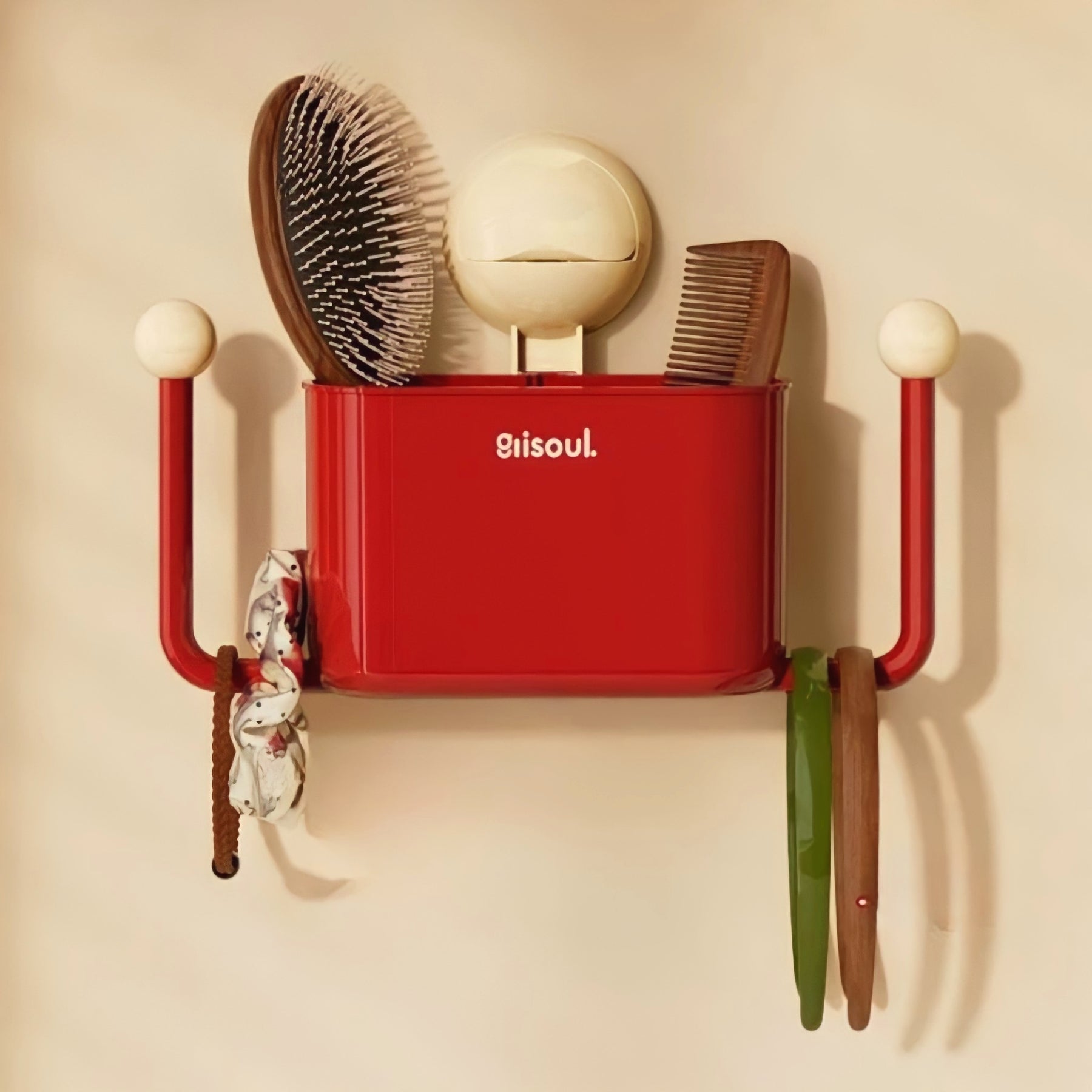 レッド・グリーン・アイボリーの3色展開。どのカラーもレトロポップで、置くだけで洗面スペースがぐっと明るくかわいい雰囲気に。見せる収納としても大活躍です。