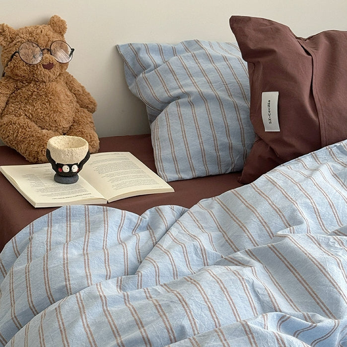 Washed Cotton Pinstripe Bedding Set, Blue