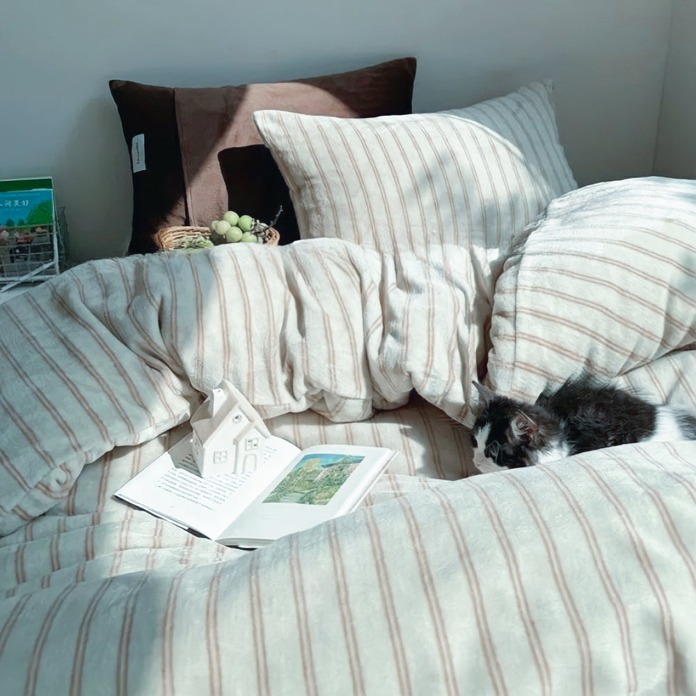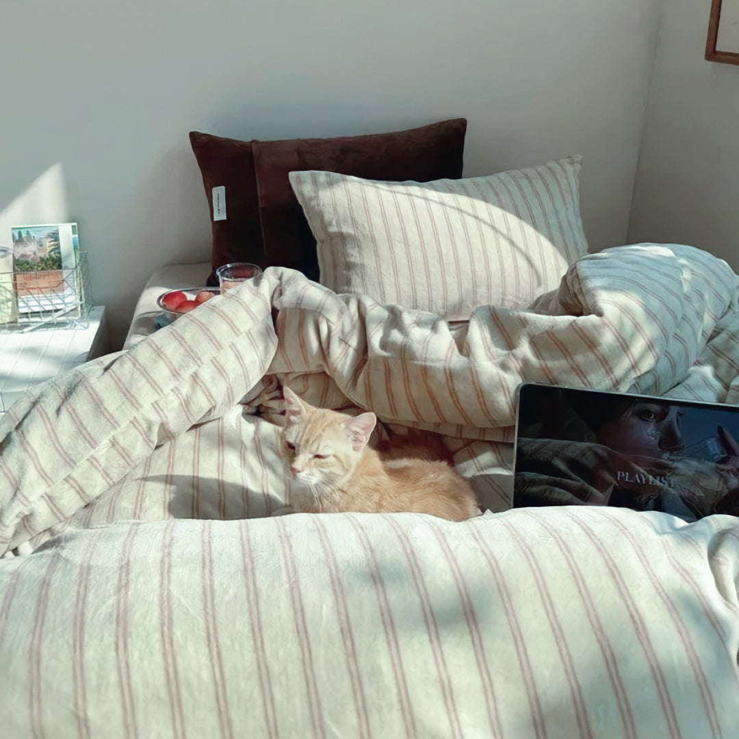 Cotton Color Stripe Bedding Set "Puff Gray"