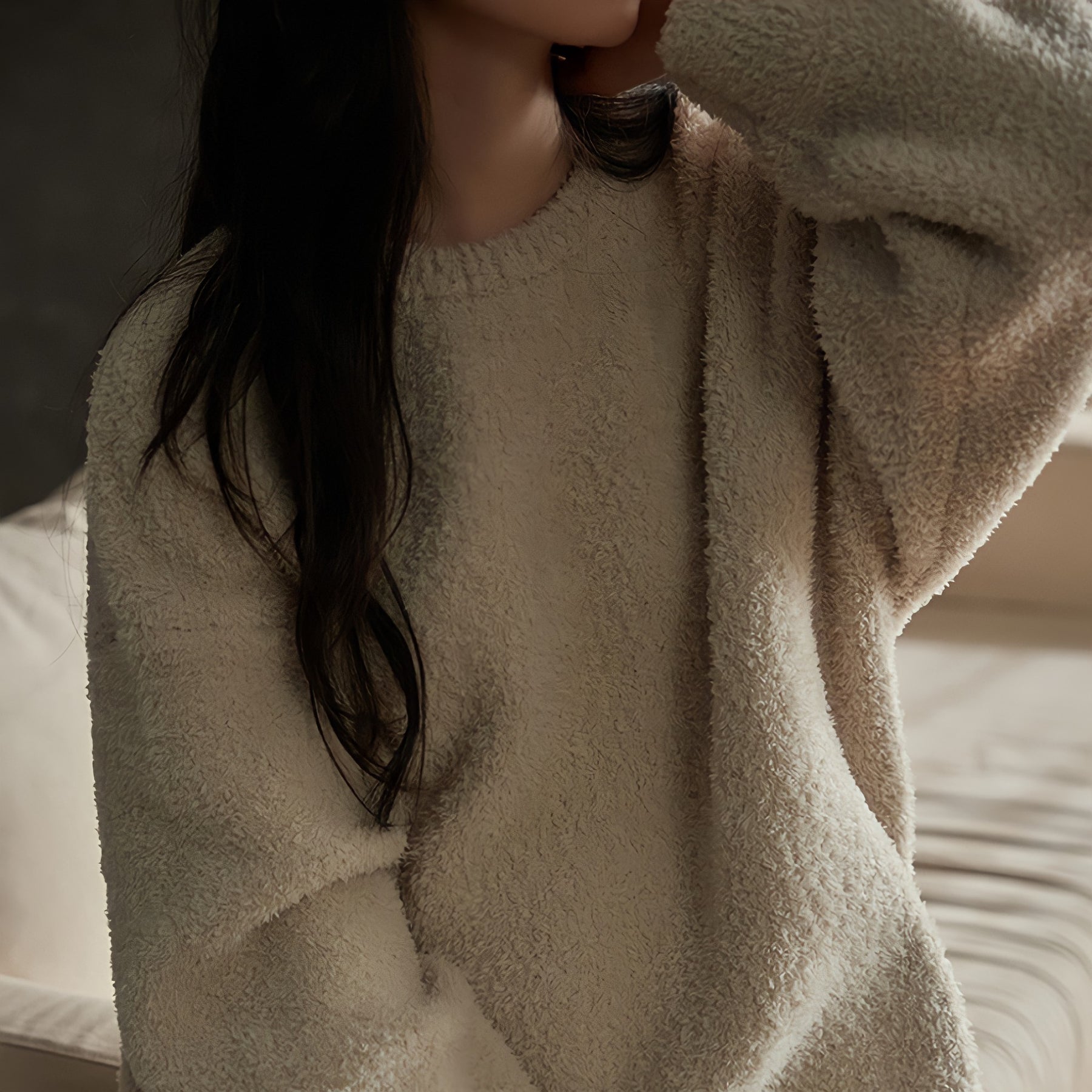 Not only is it cute, but it also has a soft, fluffy texture that makes you feel warm and relaxed from the moment you put it on. It's a gentle, comfortable garment that's perfect for relaxing.