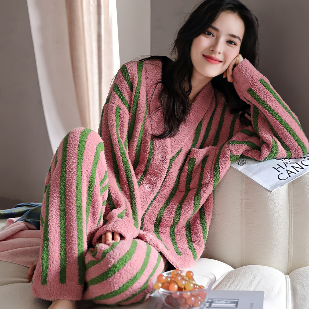 Retro Striped Fleece Bedding Set in Pink and Purple