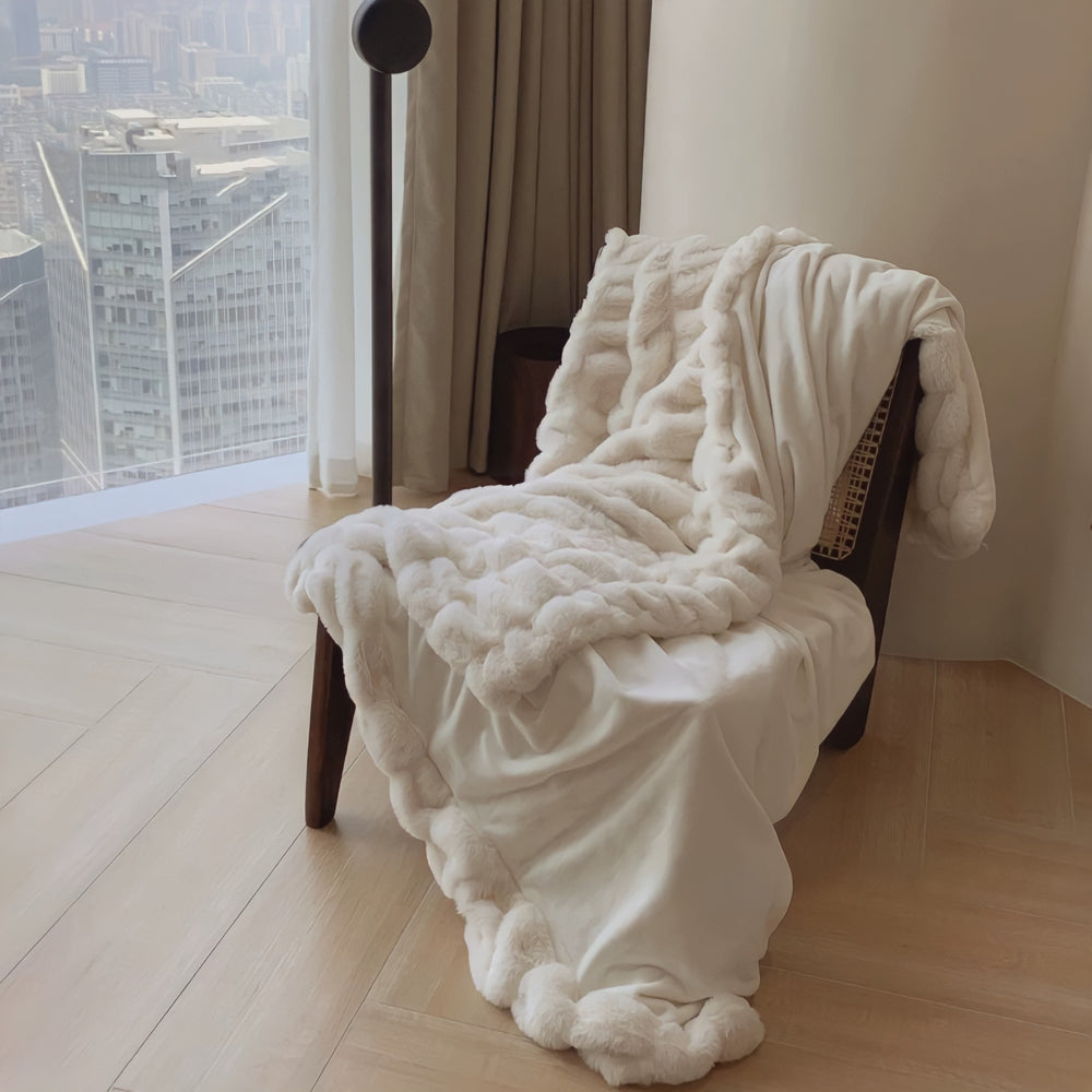 Striped Milk Fleece Bedding Set in Coconut Mocha