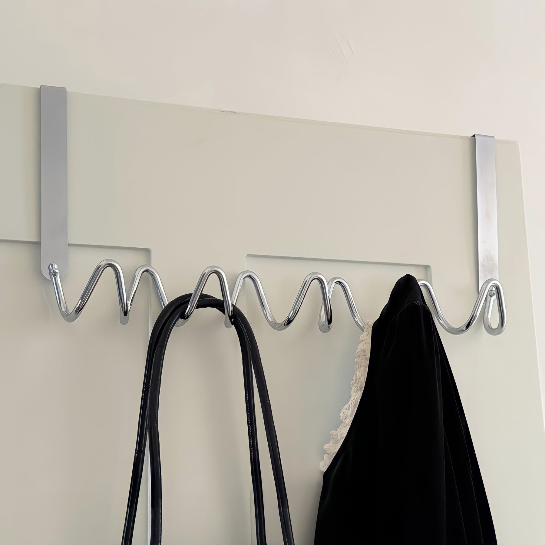 A door-mounted wall hook with an eye-catching wave-shaped design.