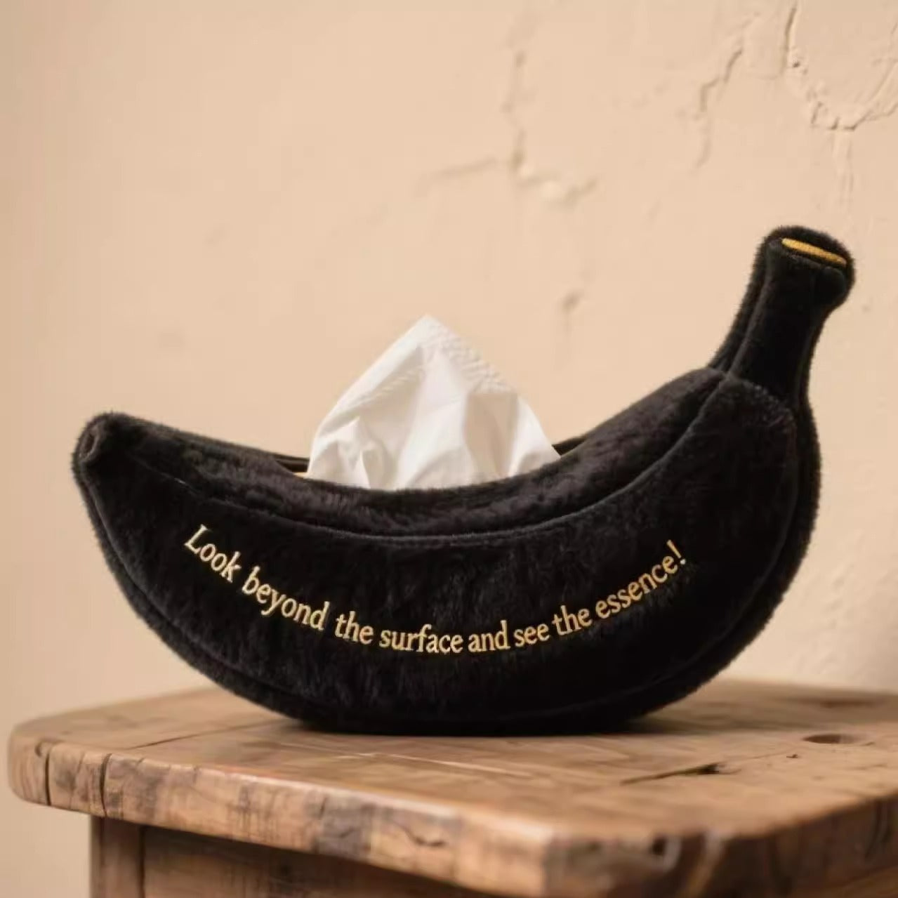 ふわふわ素材で作られた、思わず撫でたくなるバナナ型のティッシュボックス。
