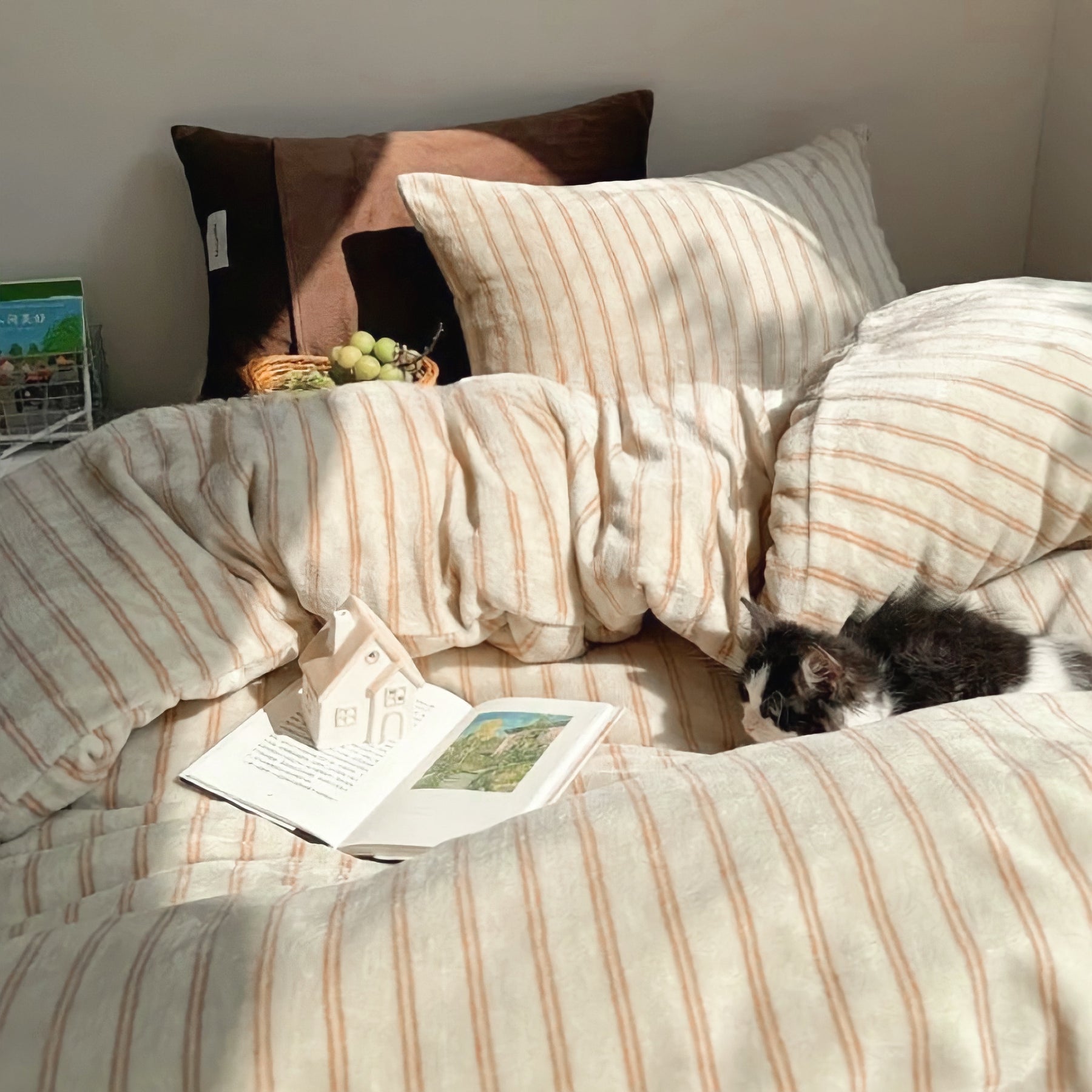 やさしい色味のストライプ柄が、寝室にナチュラルな抜け感をプラス。無地とは違うさりげない可愛さで、お部屋をふんわりとした雰囲気に仕上げてくれます。