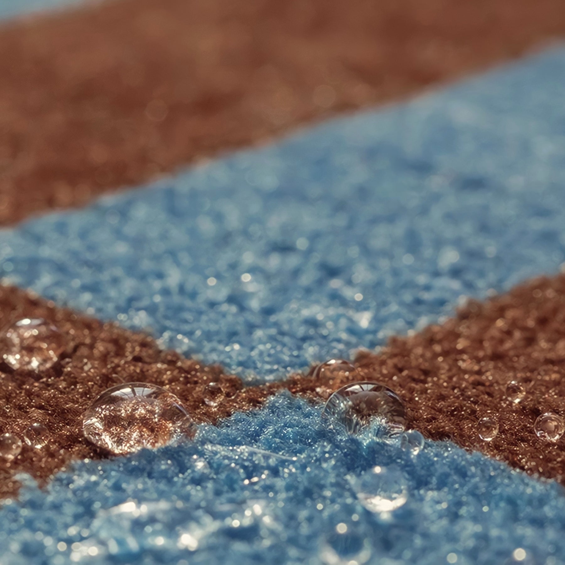 高密度繊維構造により水滴の浸透を防ぎ、汚れもつきにくい仕様。