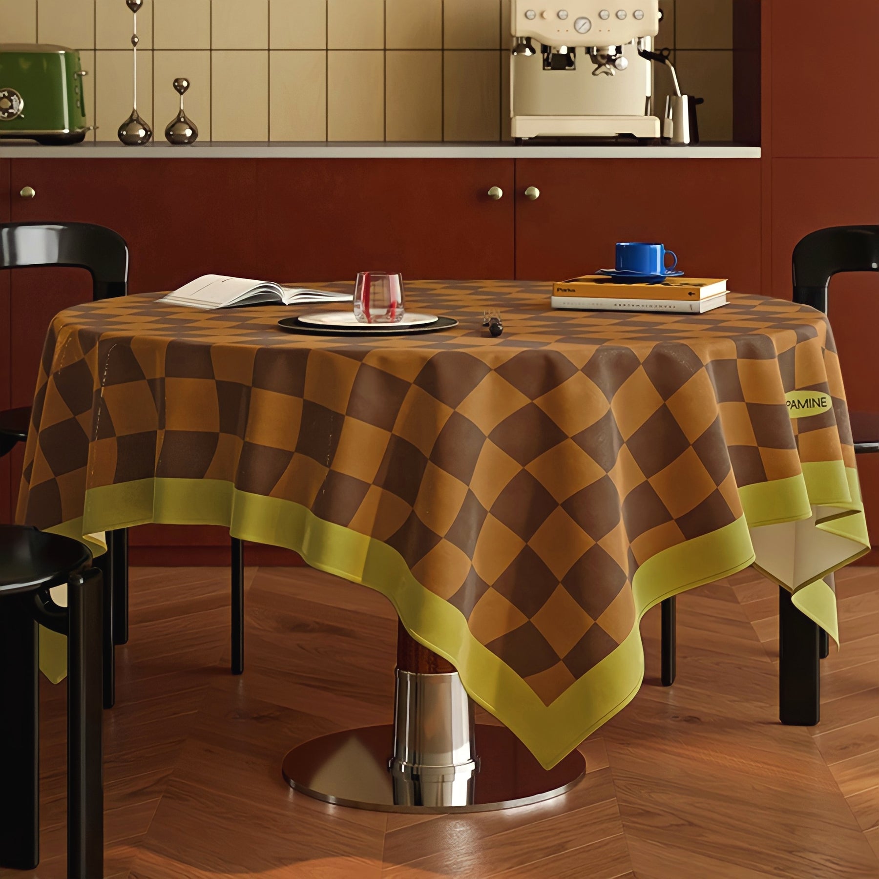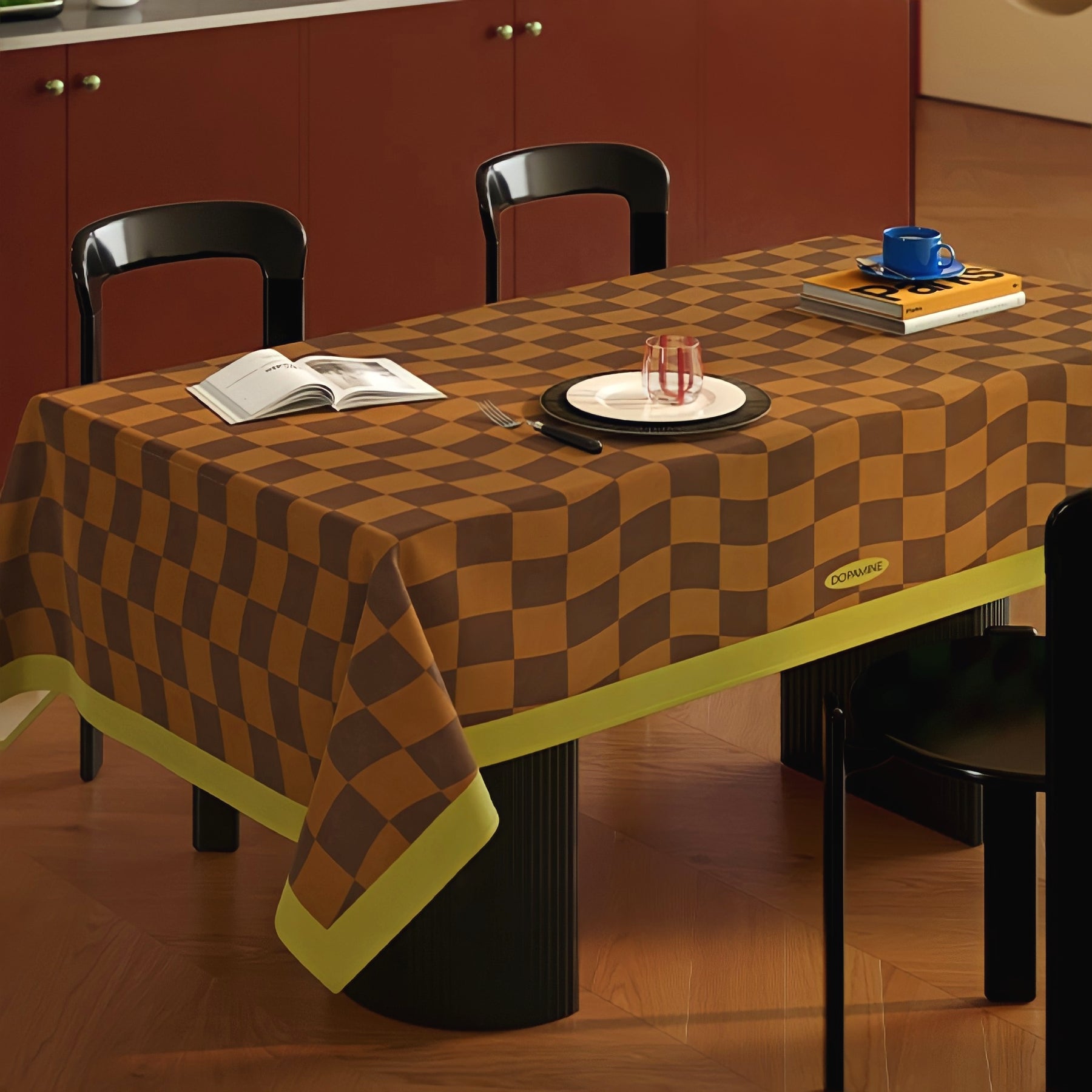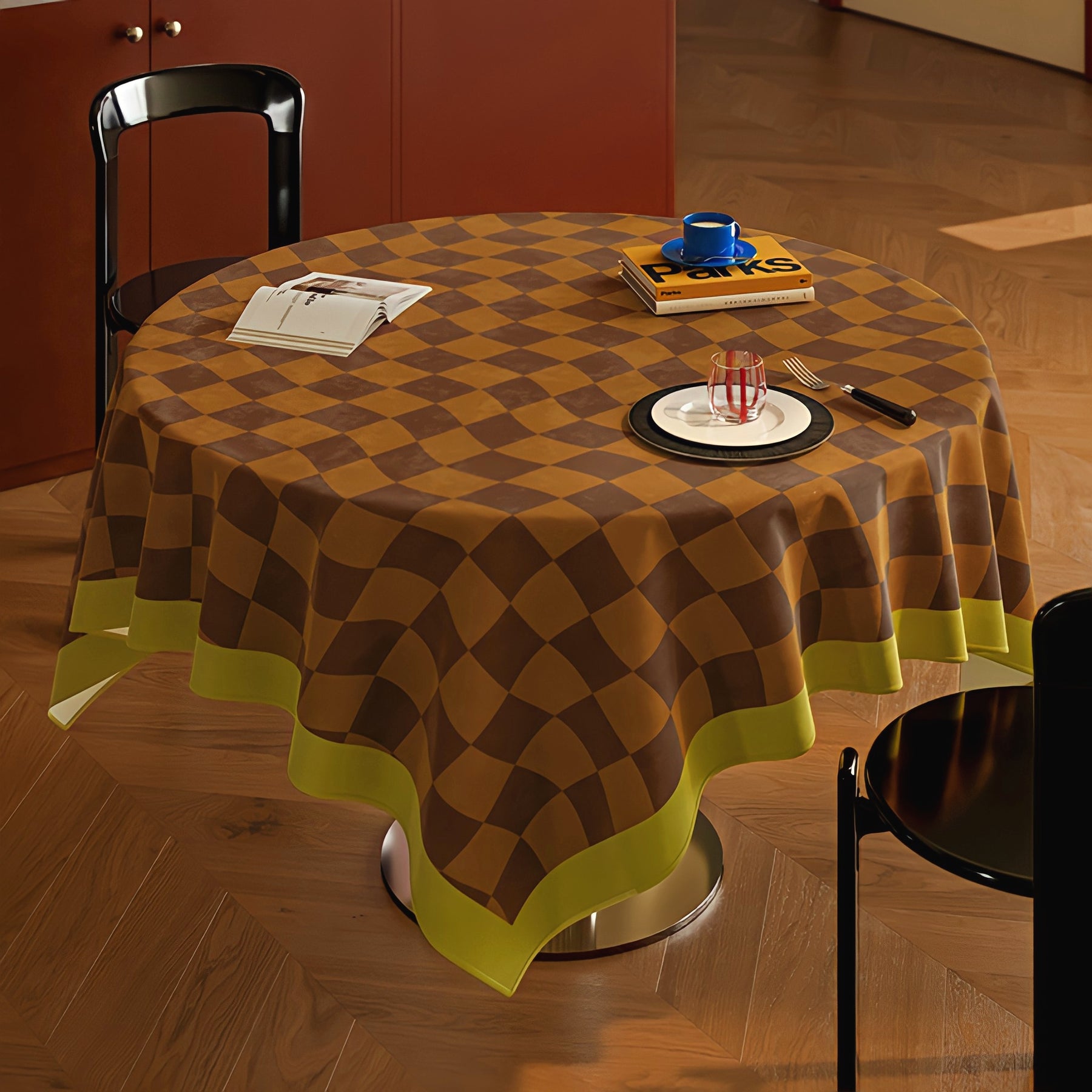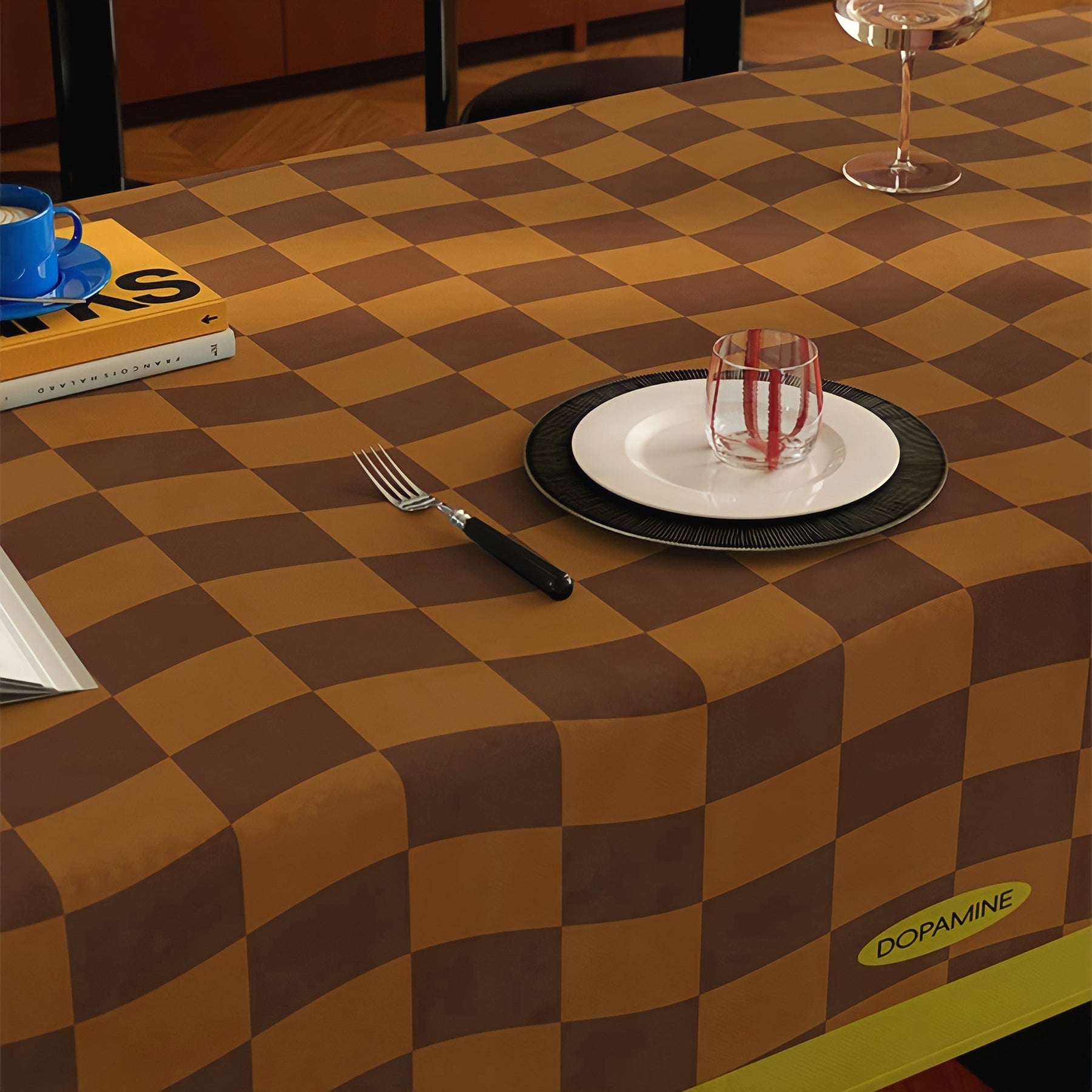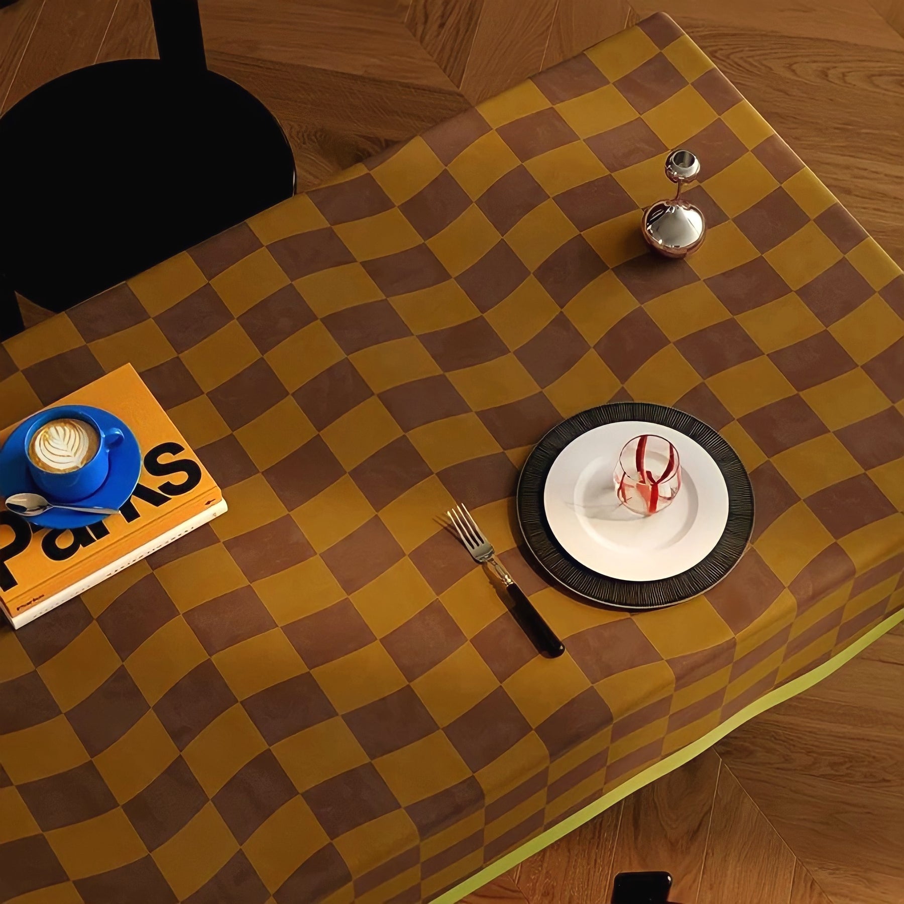 ウェーブのような立体感のあるブロックチェック柄が目を引くテーブルクロス。