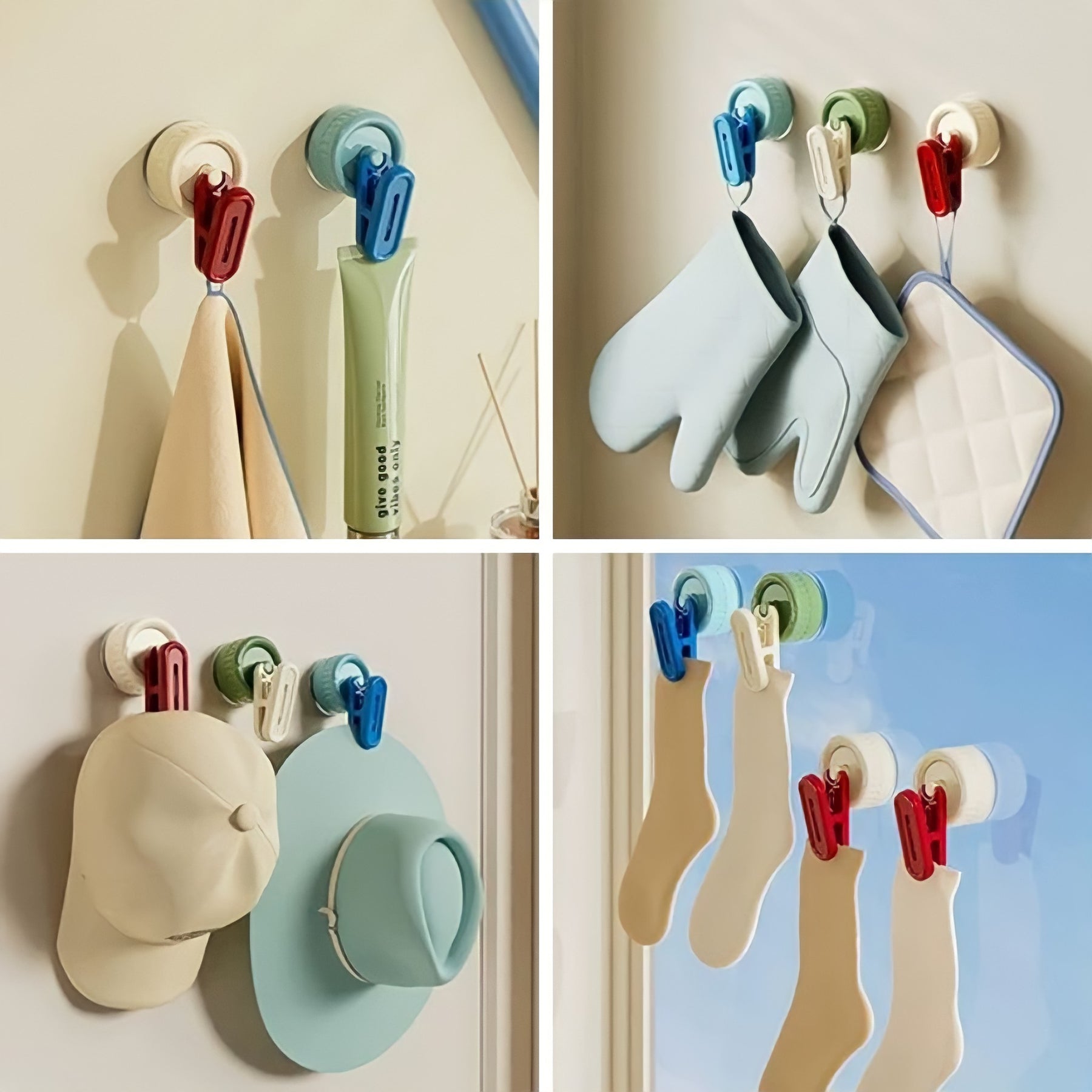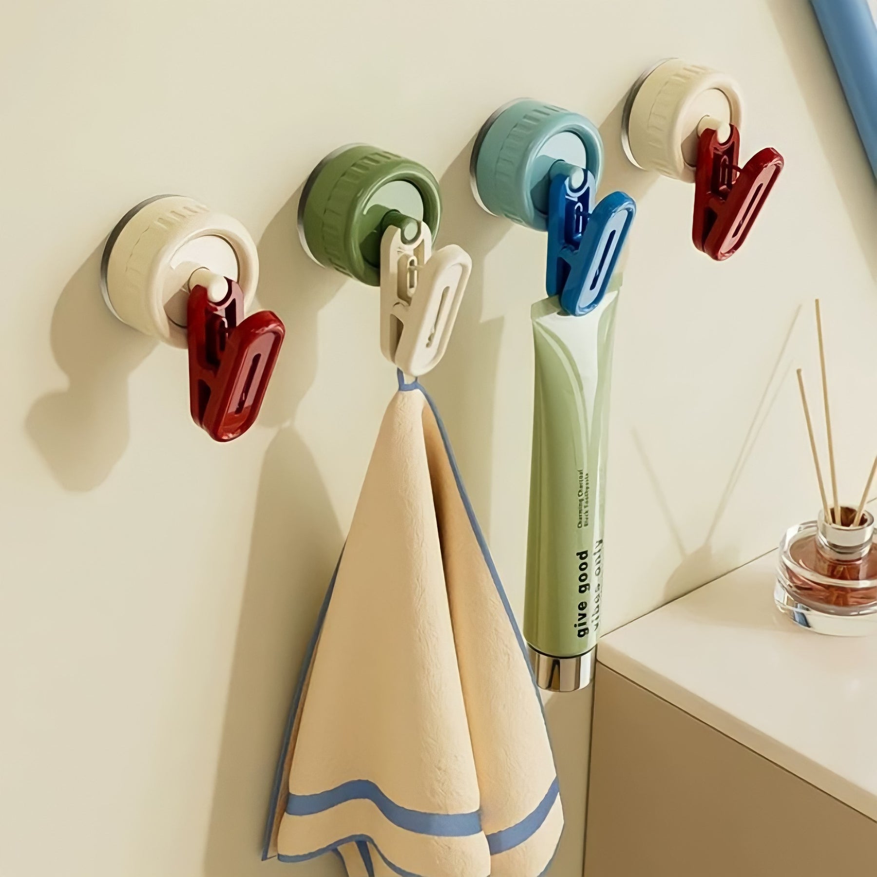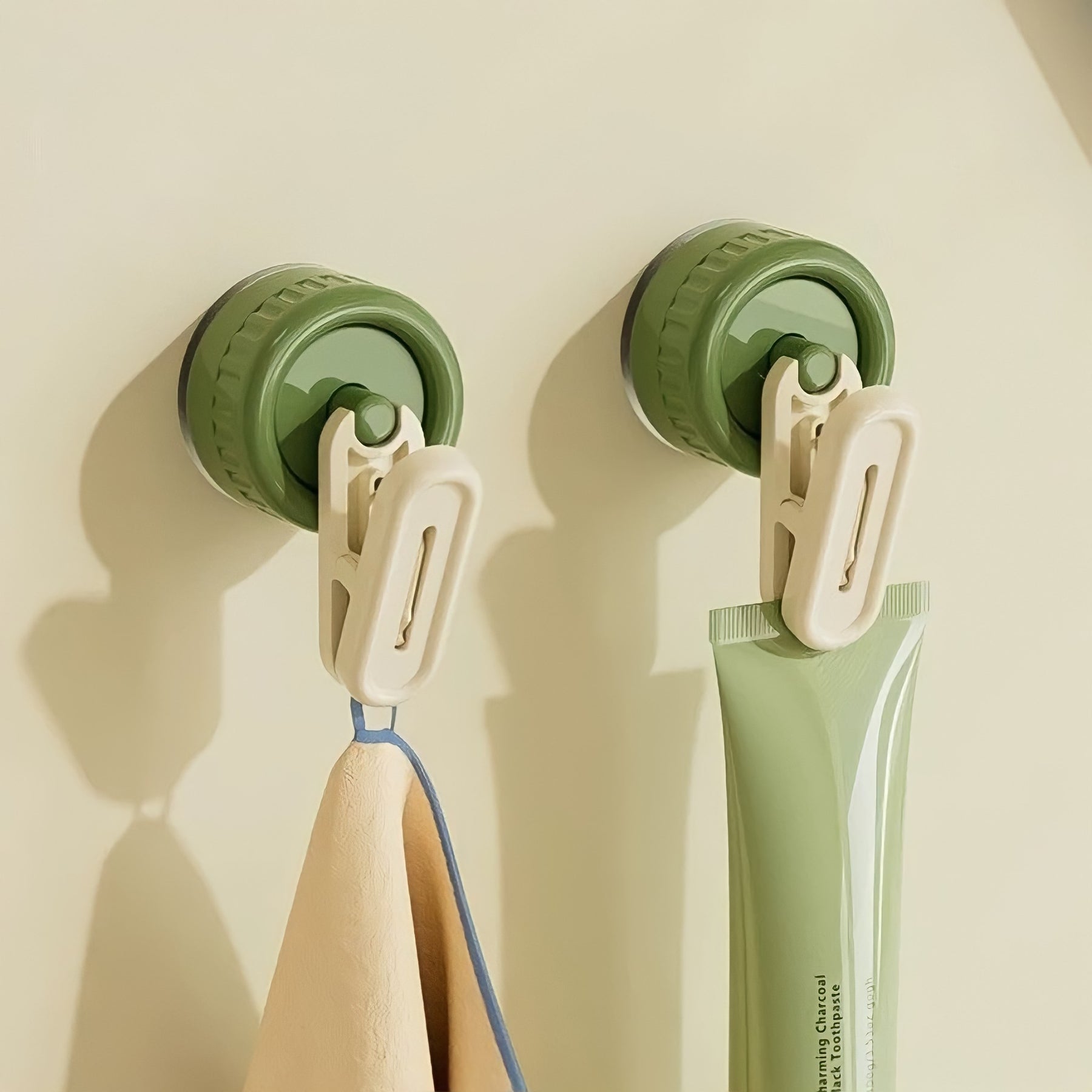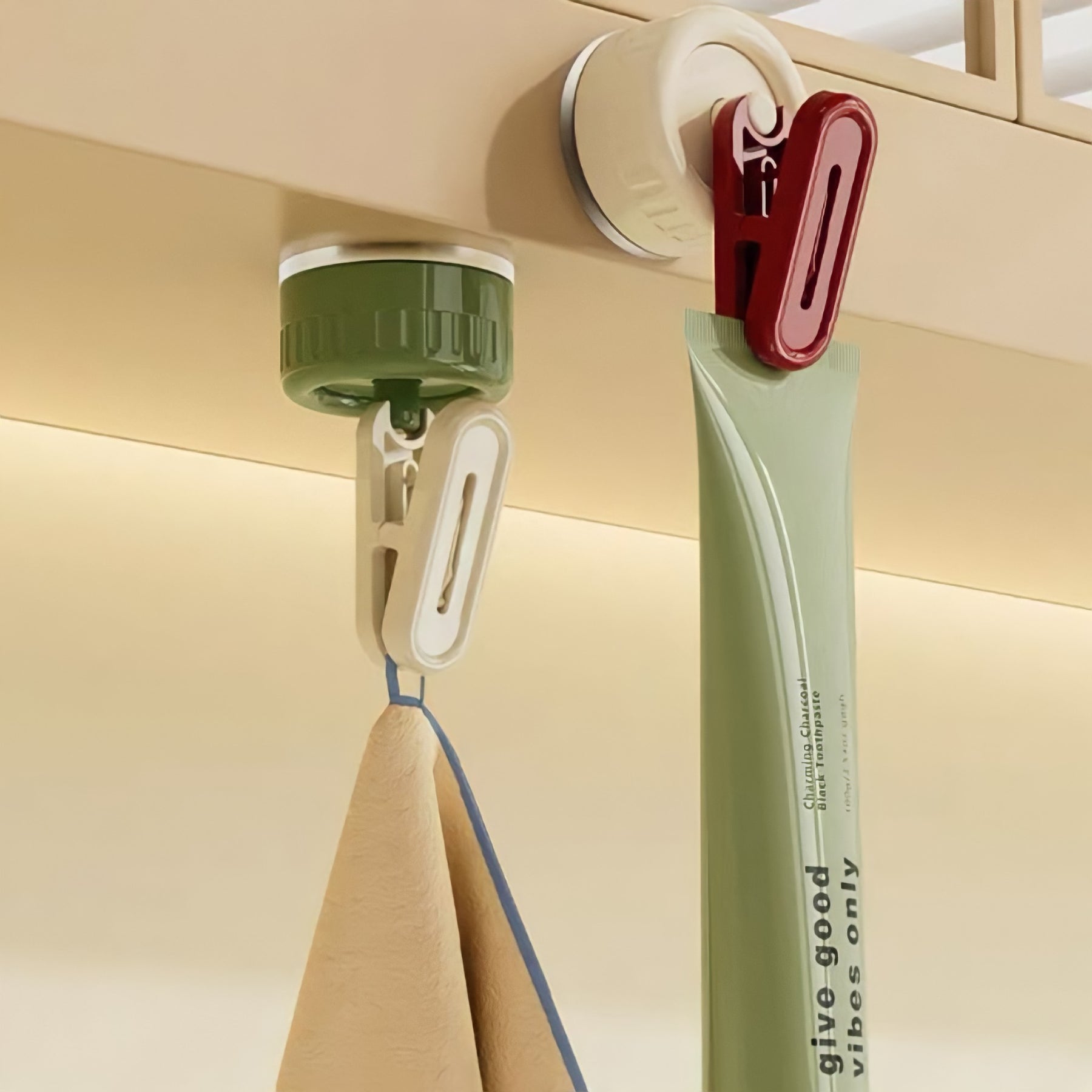 タオルや歯磨き粉、スポンジ、バッグやゴミ袋などを挟んで収納可能。カウンターや玄関などにも使えて、鍵や雑巾などの小物掛けにもぴったり。