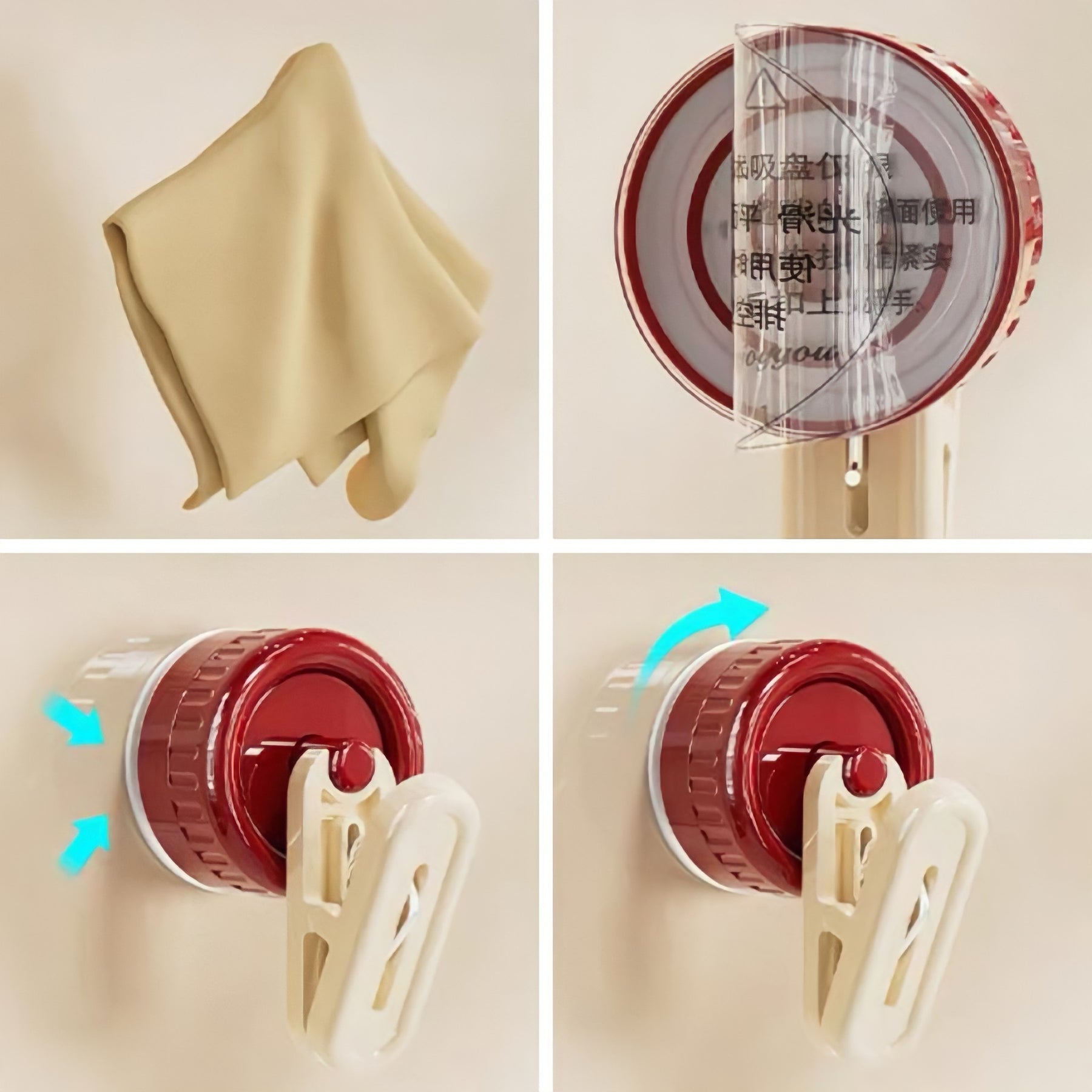 釘も接着剤も不要。吸盤を押し付けるだけでしっかり固定できる吸盤クリップフック。